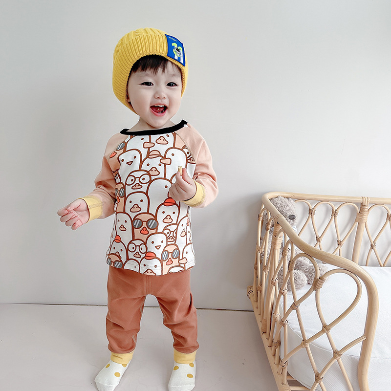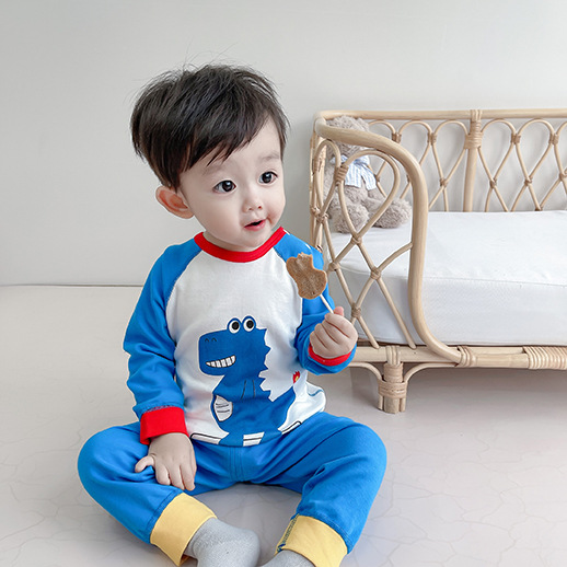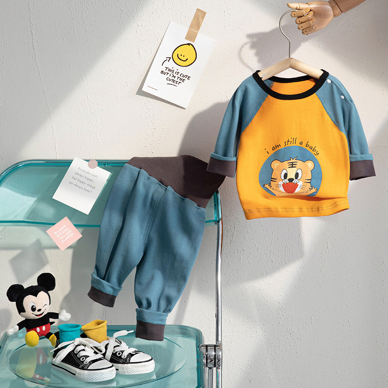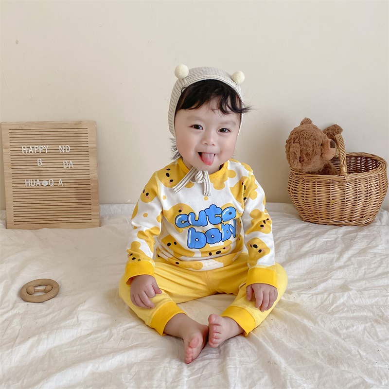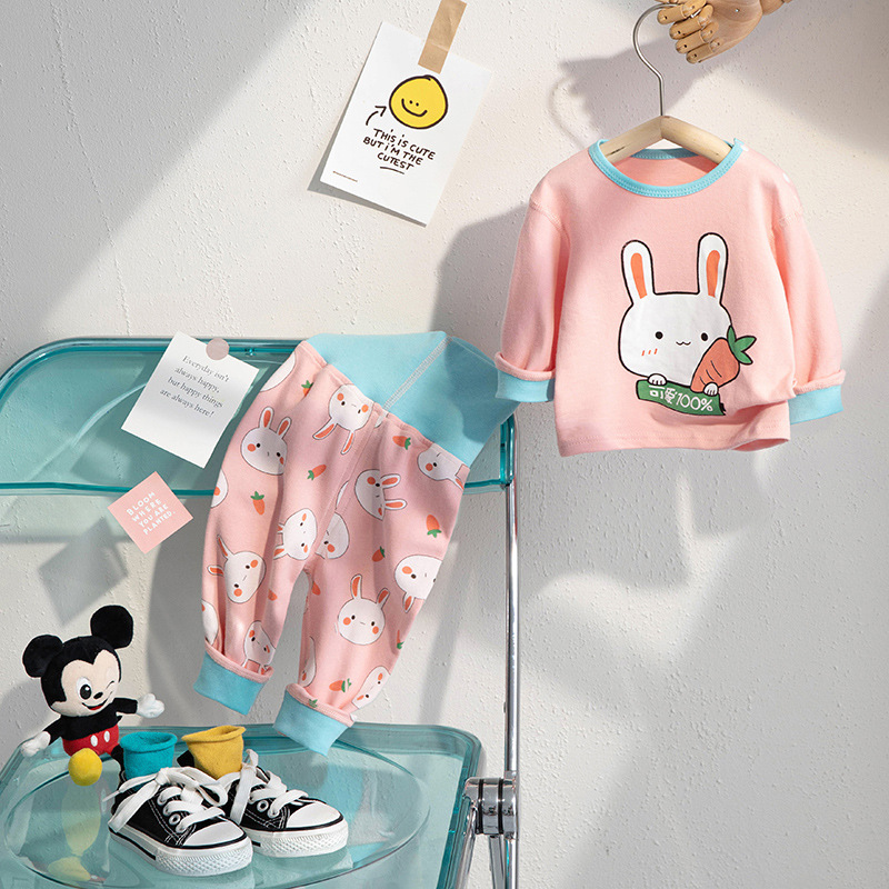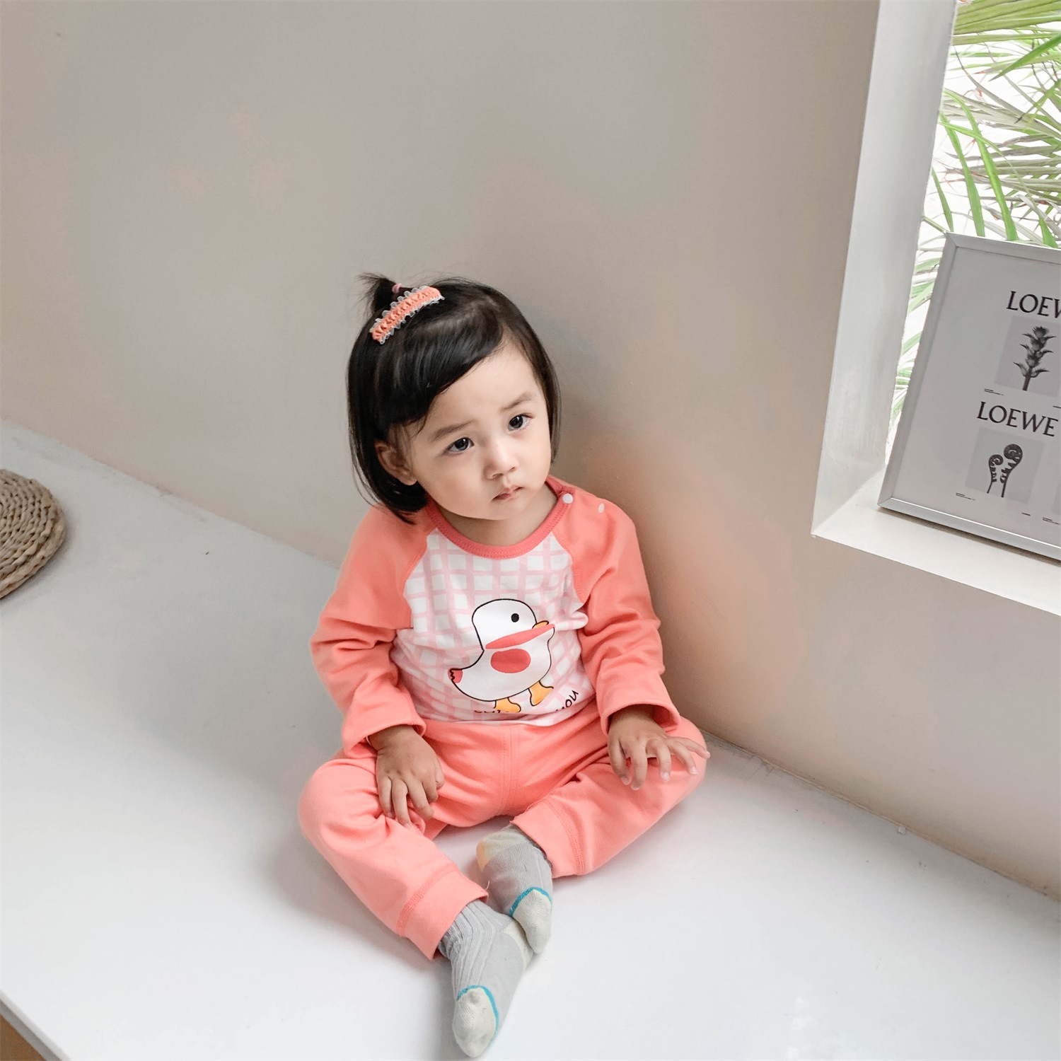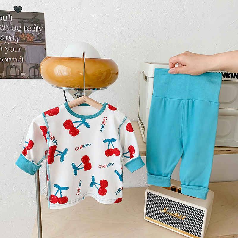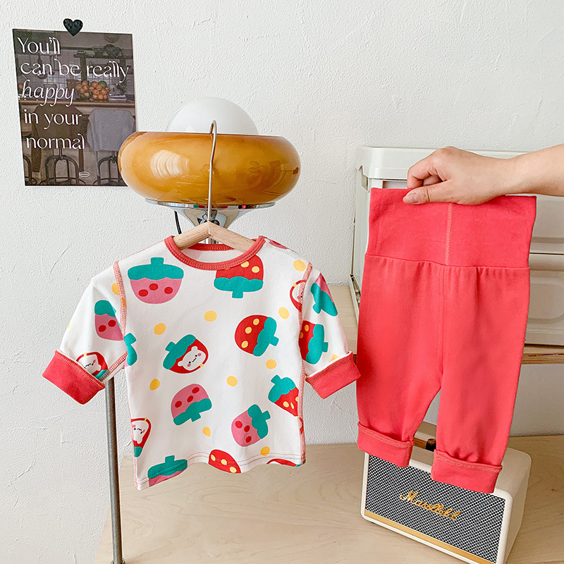 22 인터넷 유명 아기 잠옷 세트 순면 봄, 가을, 겨울 어린이 분할 높은 허리 세트 배꼽 보호 아기 옷 가을 옷스토어 가기