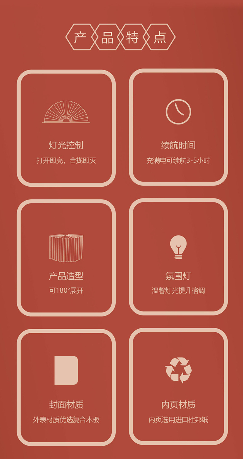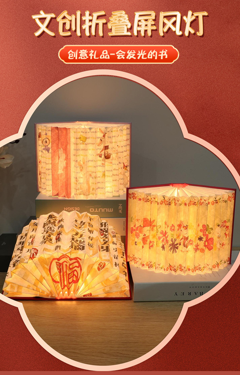 책등 맞춤 제작, 창의적인 선물, 인기 있는 분위기 조성 LED 램프, 접이식 캠퍼스 문화창의 선물, 충전식 스크린북 램프