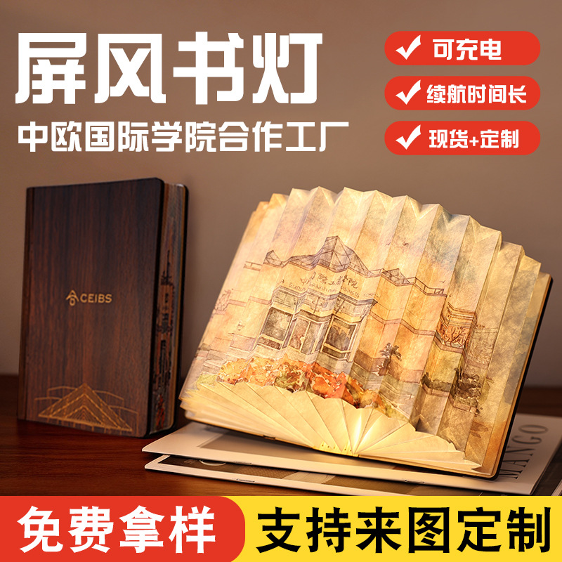 책등 맞춤 제작, 창의적인 선물, 인기 있는 분위기 조성 LED 램프, 접이식 캠퍼스 문화창의 선물, 충전식 스크린북 램프스토어 가기