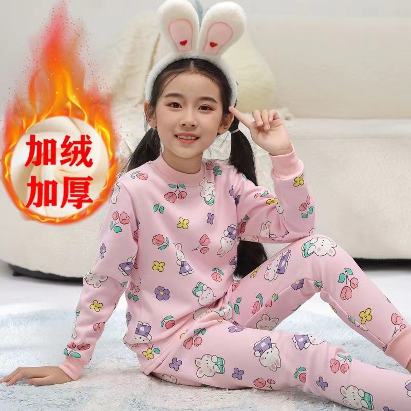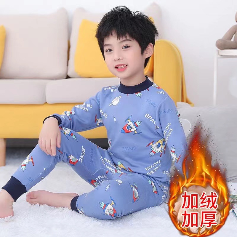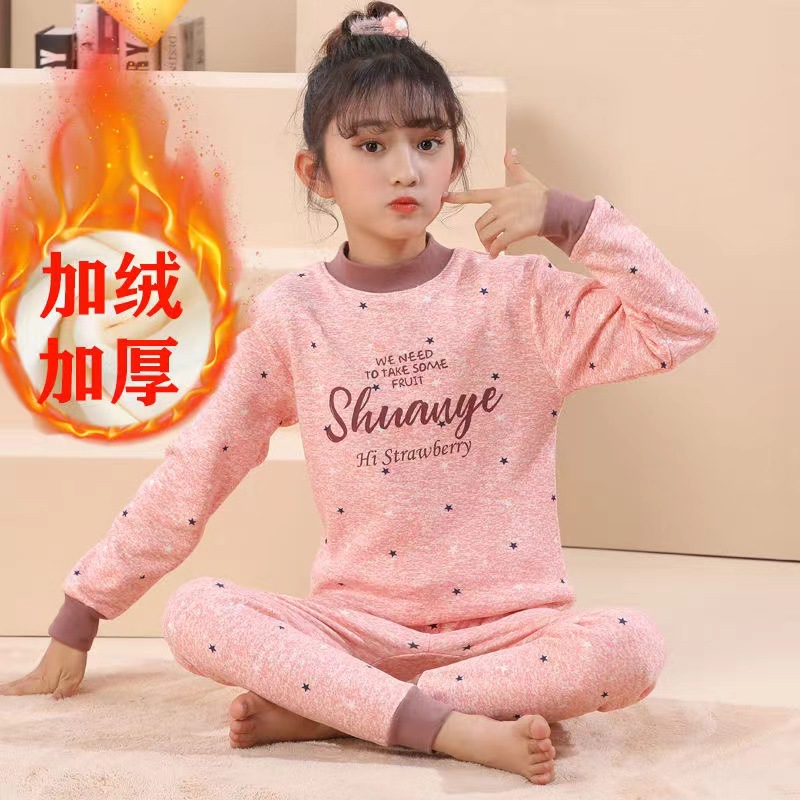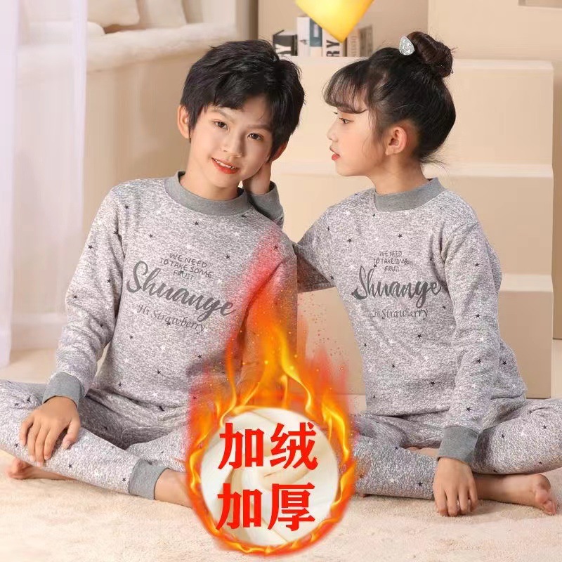 두꺼운 소년 소녀 가을 옷과 바지 가을과 겨울 바닥 기모 어린이 열 속옷 세트