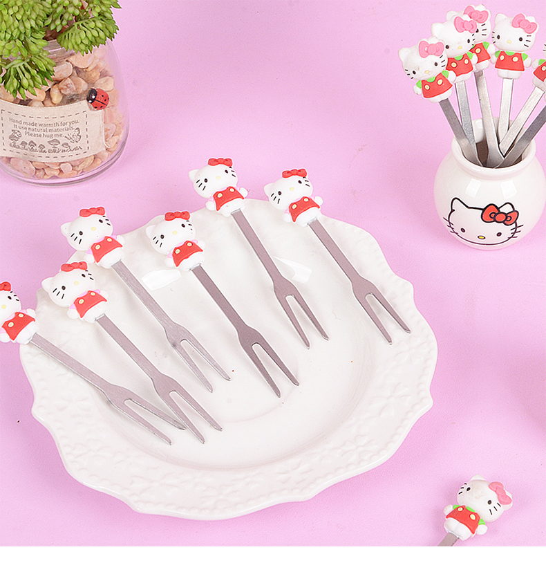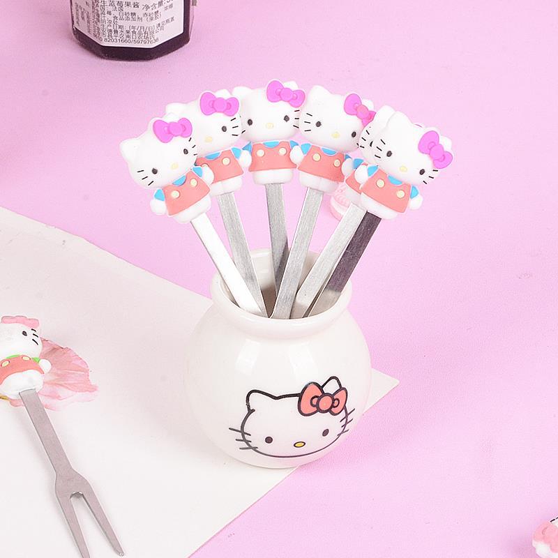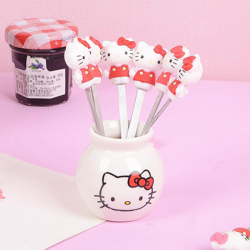 만화 과일 포크 세트 6 팩 귀여운 미니 도시락 서명 창조적 인 가정 어린이 과일 디저트 작은 포크스토어 가기