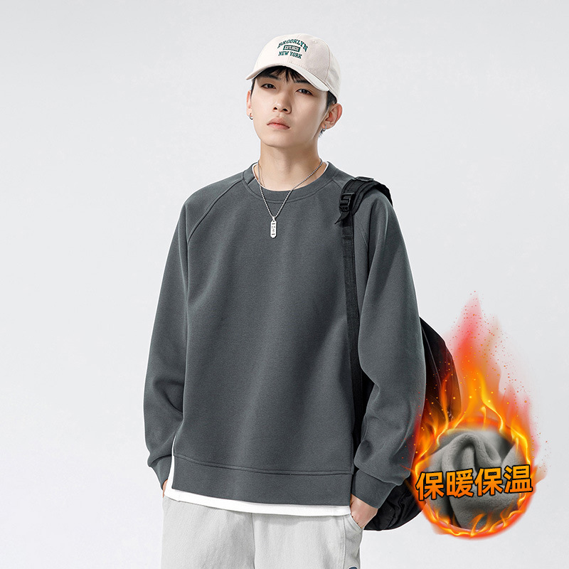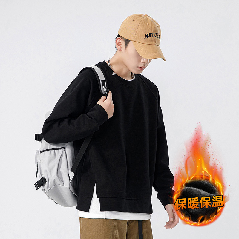 가을 남성 운동복 Huan Hai Pengyun 남성 새로운 무거운 느슨한 긴팔 플러스 벨벳 가짜 투피스 라운드 넥 운동복 남성용스토어 가기