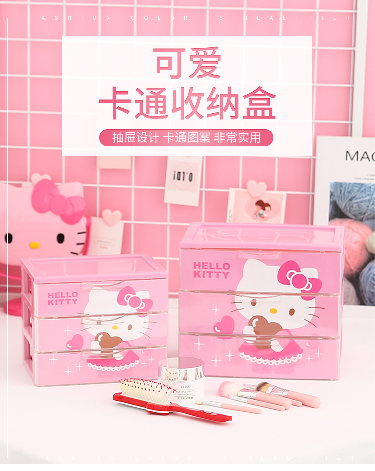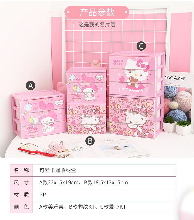 만화 다기능 소녀의 마음 화장품 보관함 랙 데스크탑 기숙사 수납 캐비닛 서랍 형 핑크 시리즈스토어 가기