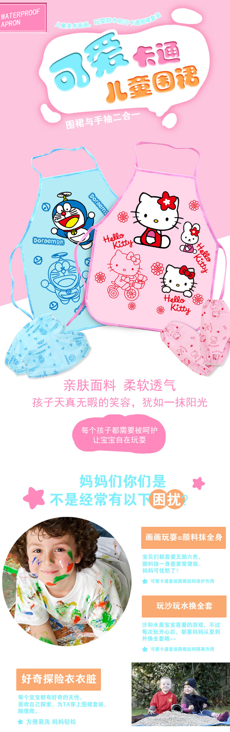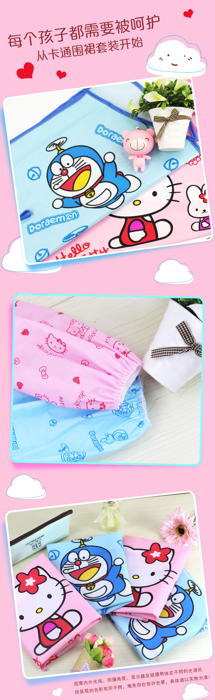 卡通凯蒂猫可爱儿童围裙女防水幼儿园画画衣罩衣男宝宝带袖套套装