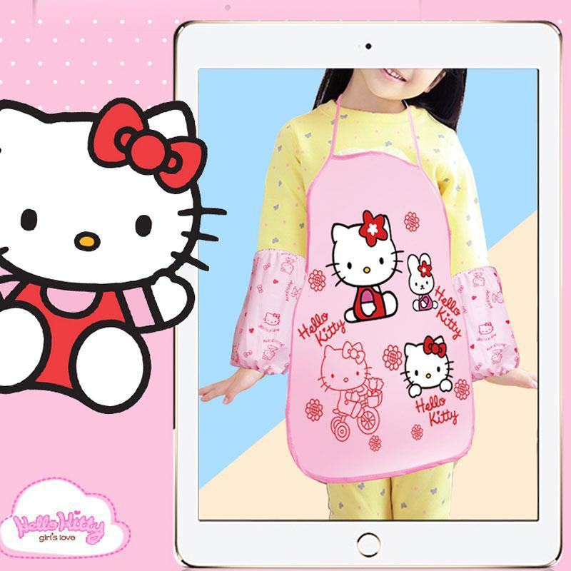 만화 헬로 키티 귀여운 어린이 앞치마 여자의 방수 유치원 그림 옷 커버 세트 소매와 소년과 아기를위한 옷스토어 가기