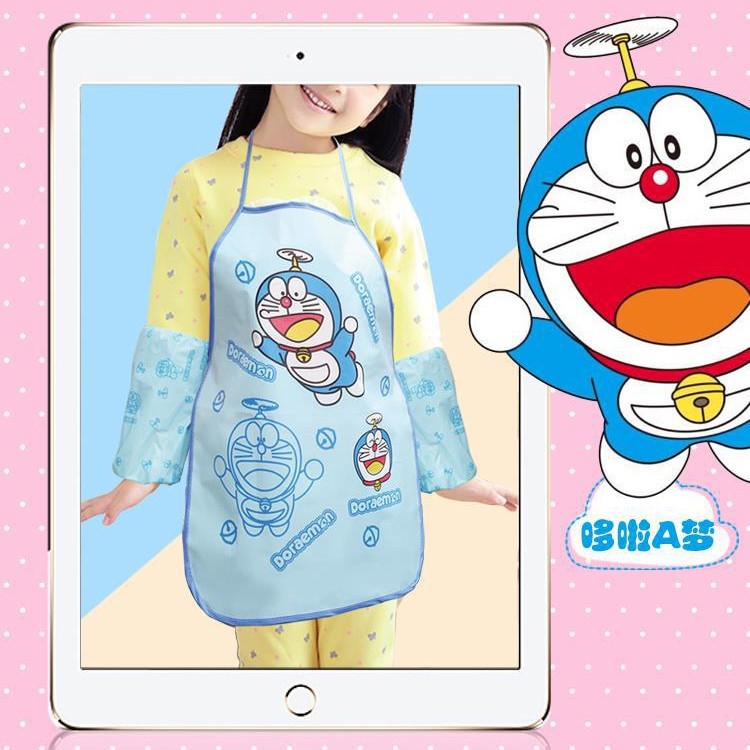 围裙袖套套装,防水防脏容易清洗,宝宝吃饭、画画再也不怕弄脏衣服了。适合2-7岁(身高70com-145cm)的宝宝使用。围裙+袖套 套装多种图案任选,百搭经典款,男女童都能穿!环保PEVA面料,防水防油!平整车线,精细做工!时尚潮流,舒适可爱!