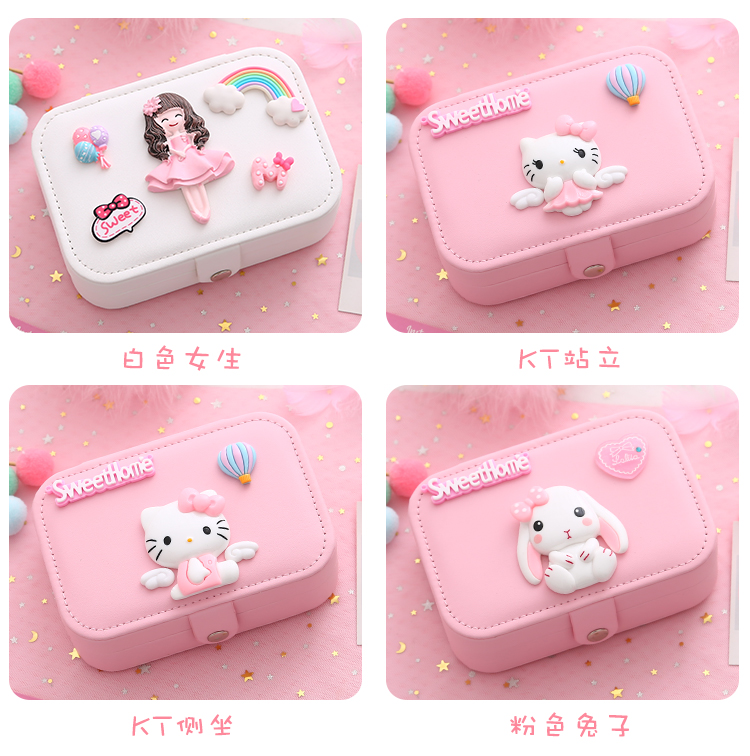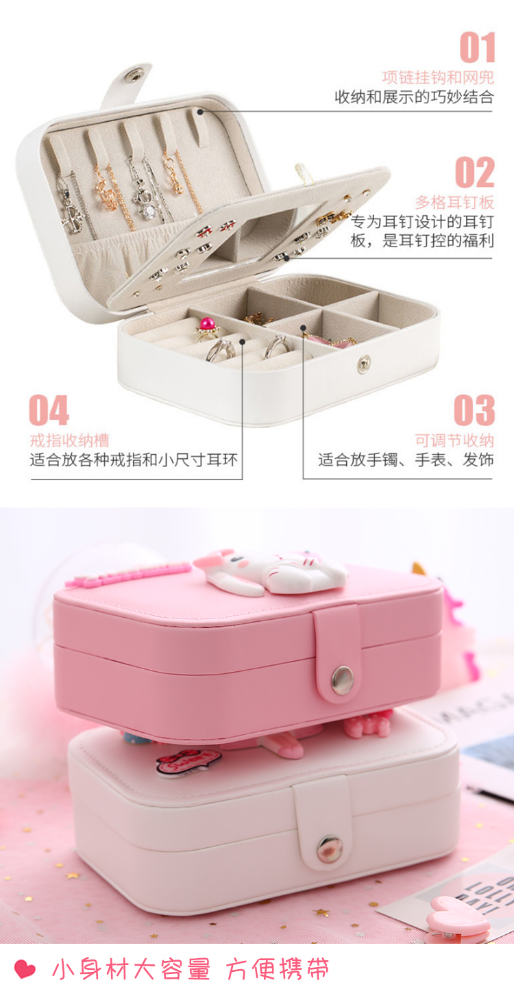 만화 어린이 공주 휴대용 보석 플란넬 보석 상자 보석 귀걸이 목걸이 보관함 가리 하트스토어 가기