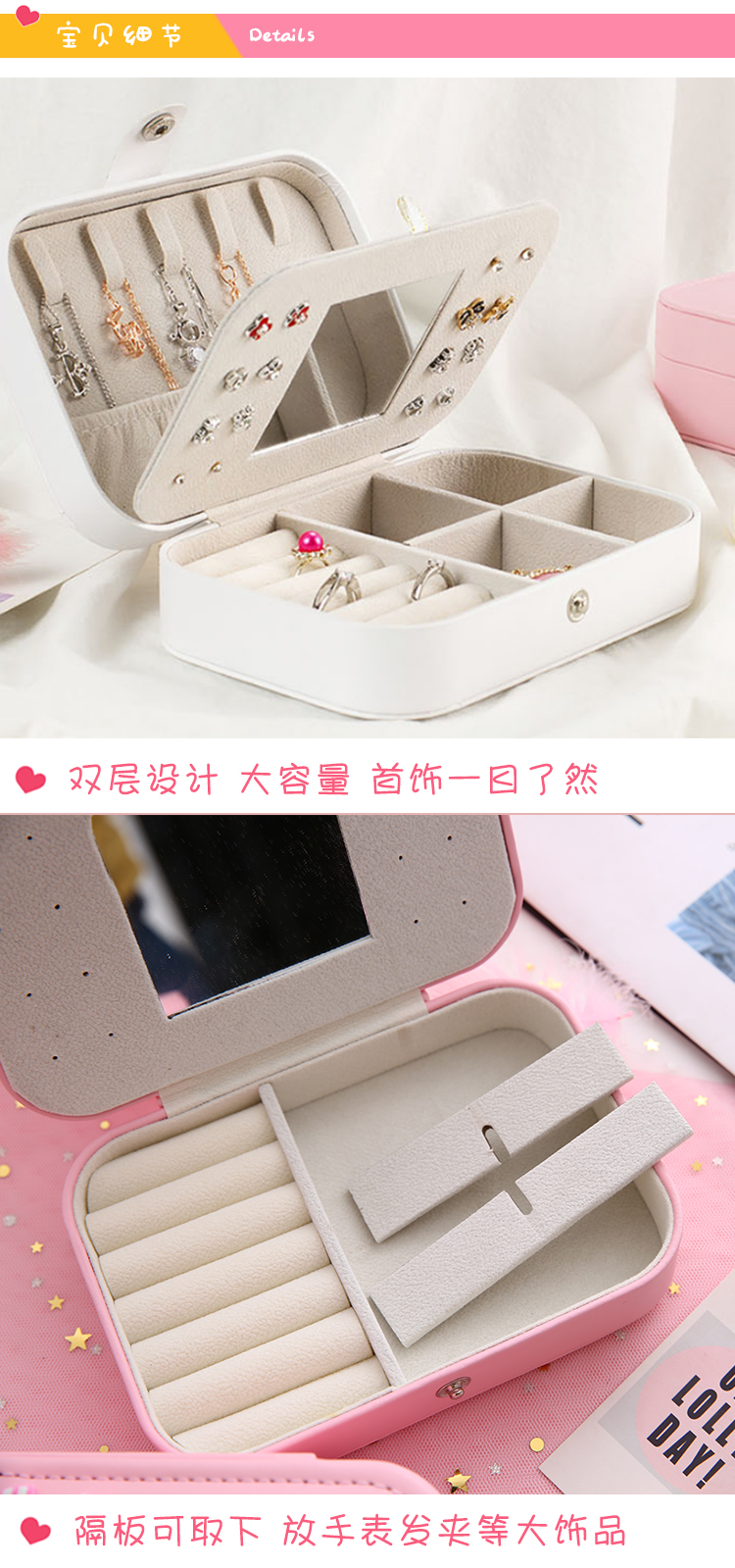 만화 어린이 공주 휴대용 보석 플란넬 보석 상자 보석 귀걸이 목걸이 보관함 가리 하트