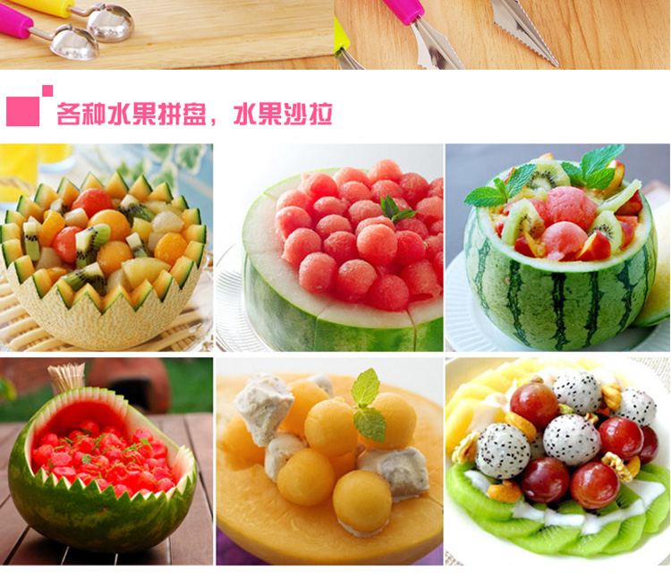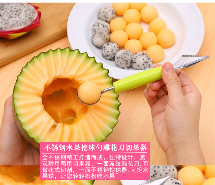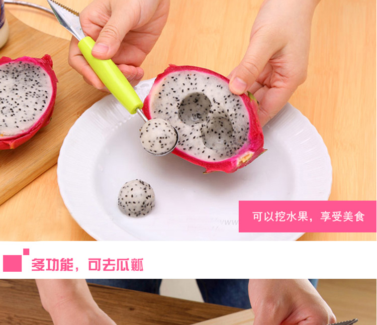 스테인레스 스틸 과일 공 파기 유물 수박 공 파기 숟가락 아이스크림 숟가락 펄프 파는 사람 패턴 과일 칼 도구