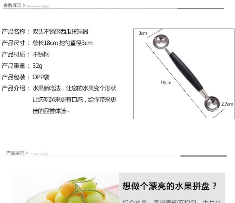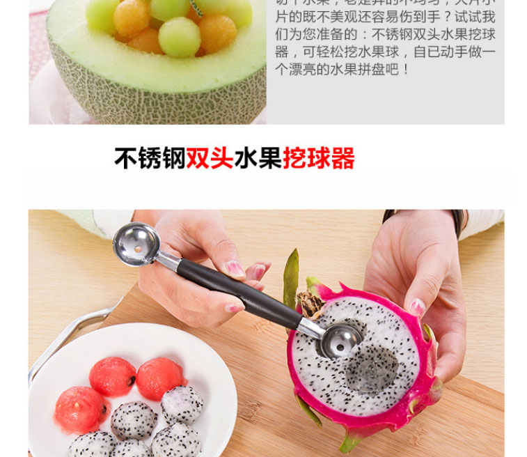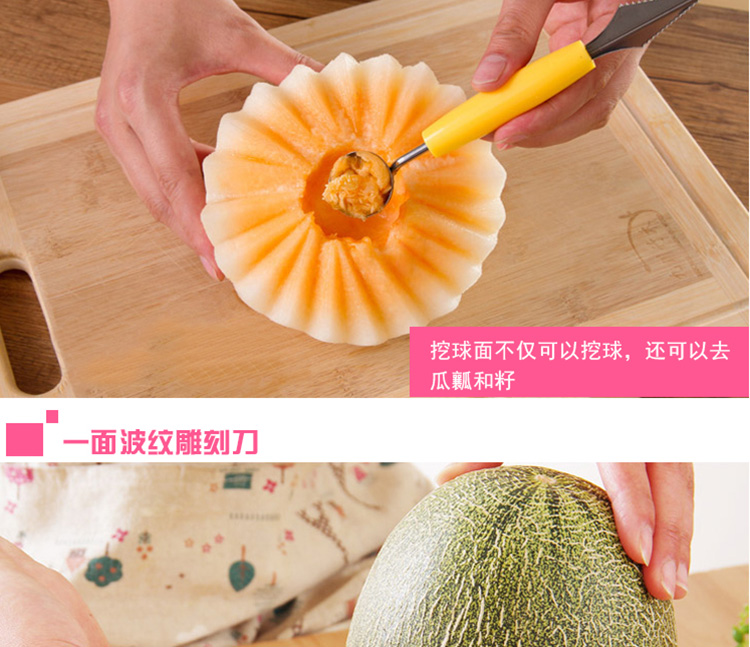 스테인레스 스틸 과일 공 파기 유물 수박 공 파기 숟가락 아이스크림 숟가락 펄프 파는 사람 패턴 과일 칼 도구스토어 가기
