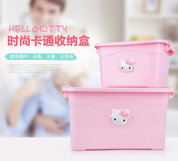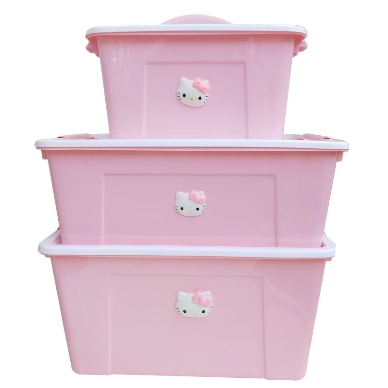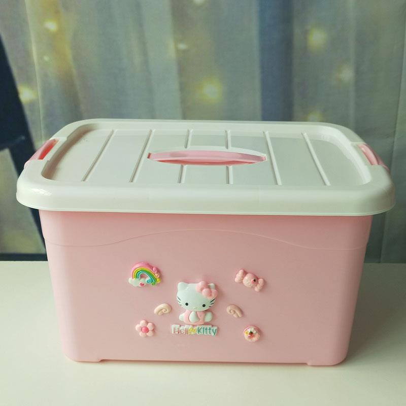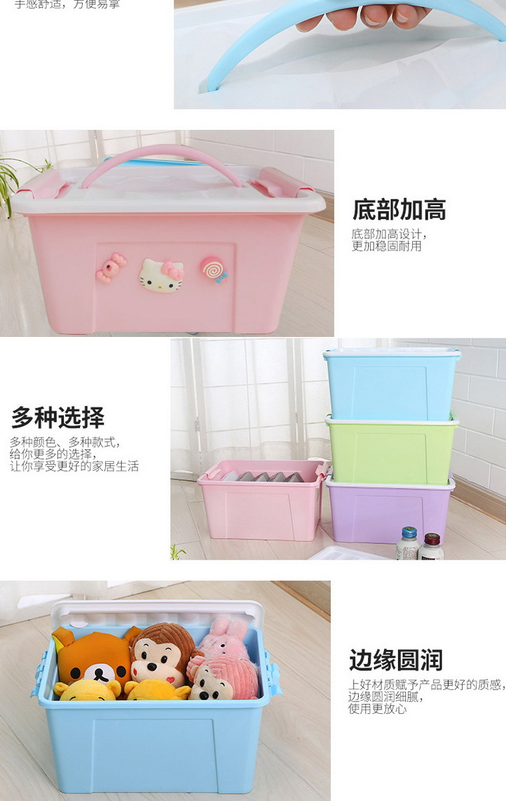 带盖整理箱卡通手提储物箱塑料杂物盒收纳箱整理盒收纳盒内衣盒