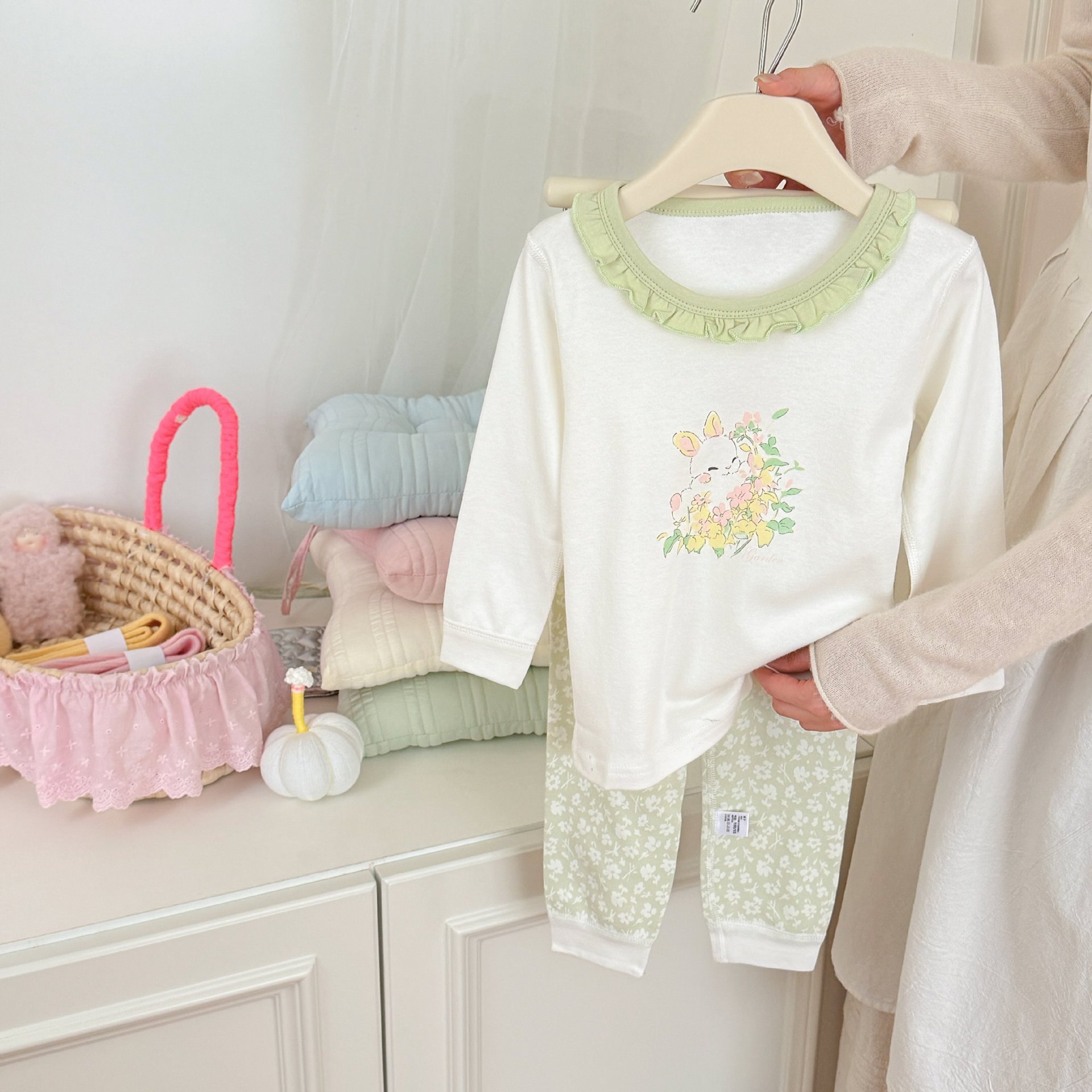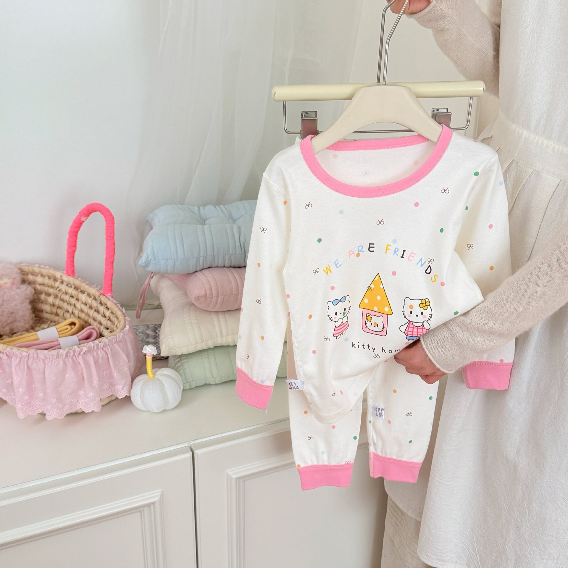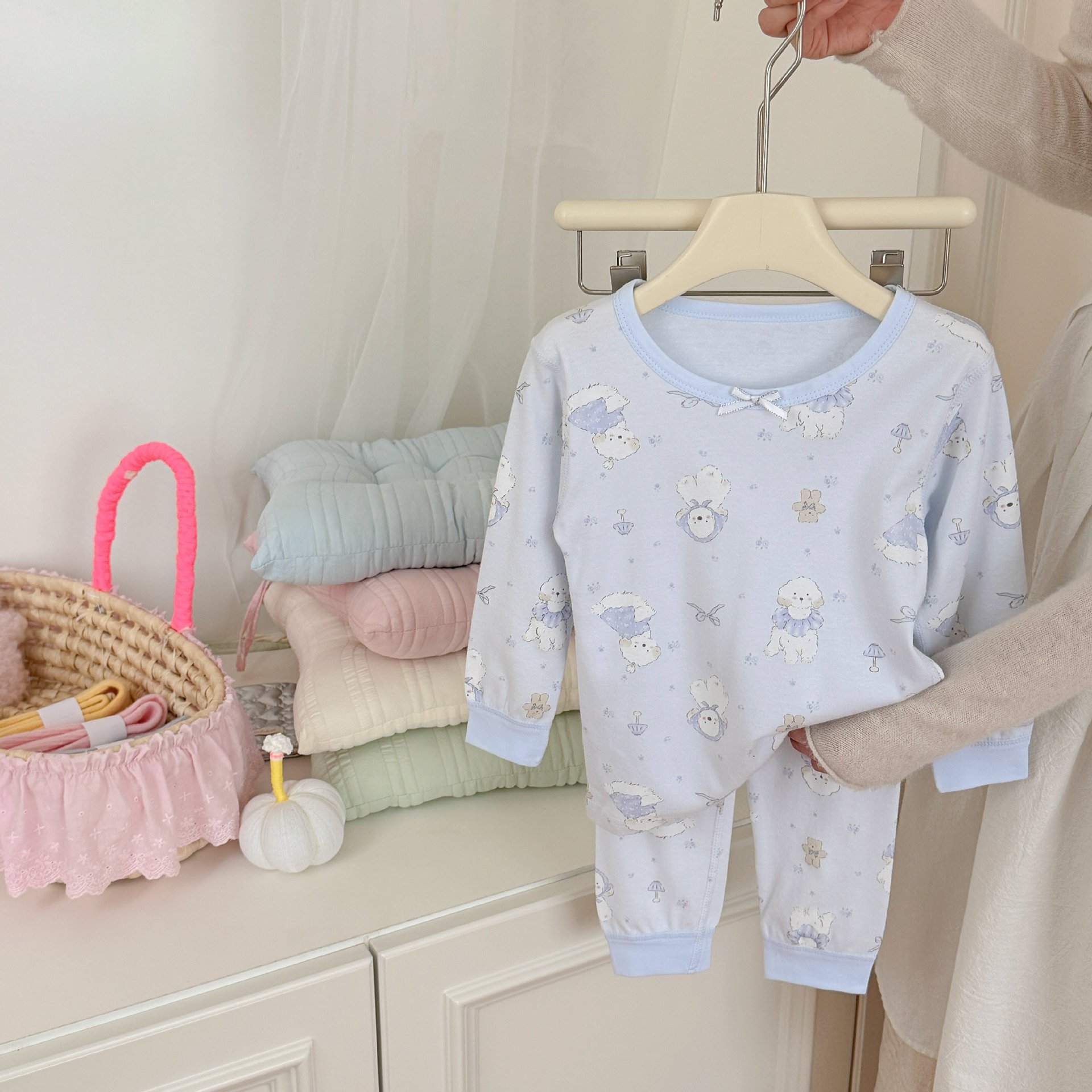 귀여운 만화 가을과 겨울 순면 잠옷 아기의 한국 속옷 가정 옷을 세트 어린이 뼈없는 가을 옷과 바지스토어 가기