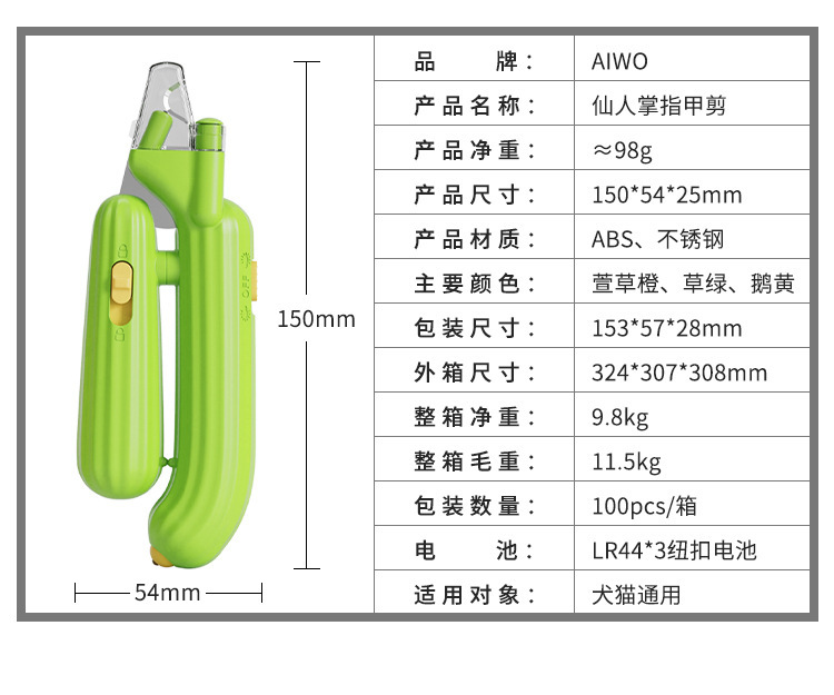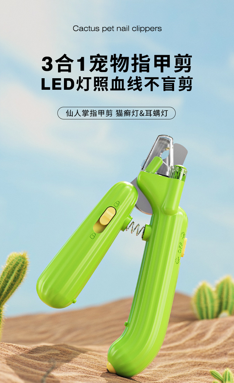 선인장 애완 동물 손톱깎이 고양이 손톱깎이 개 손톱깎이 전기 LED 혈액 라인 애완 동물 용품 크로스 보더스토어 가기