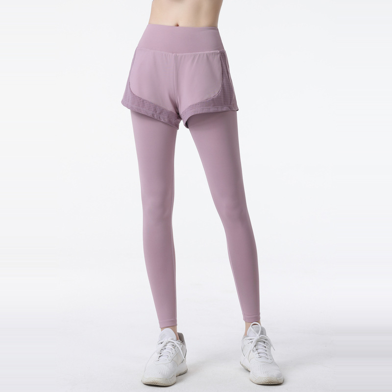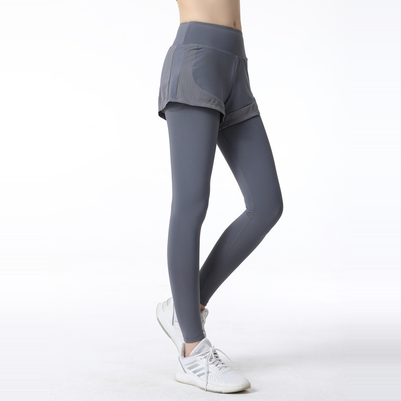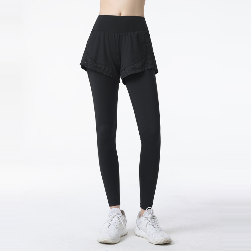 플러스 사이즈 눈부심 방지 가짜 투피스 스포츠 바지 여성용 하이 웨이스트 타이트 스티칭 스포츠 바지 피트니스 러닝 요가 바지 여성스토어 가기