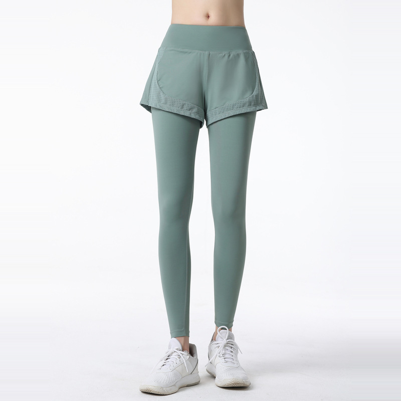 플러스 사이즈 눈부심 방지 가짜 투피스 스포츠 바지 여성용 하이 웨이스트 타이트 스티칭 스포츠 바지 피트니스 러닝 요가 바지 여성