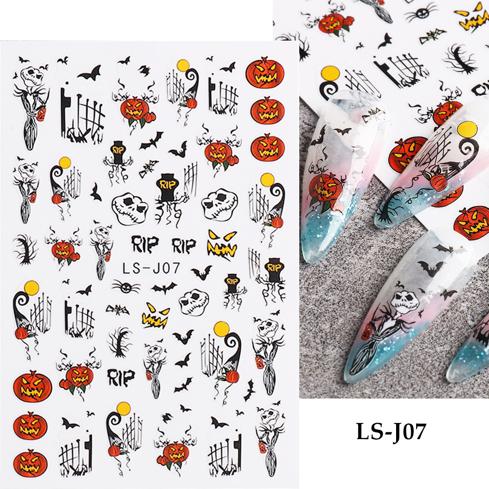 2022 국경 간 공급 새로운 네일 아트 스티커 사악한 호박 거미 뱀파이어 할로윈 접착 네일 스티커