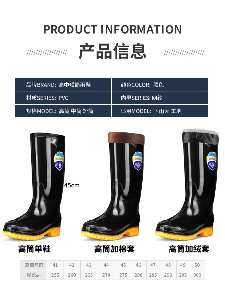 방수 및 미끄럼 방지 초대형 워터 슈즈 남성용 두꺼운 쇠고기 바닥 블랙 하이 배럴 노동 보호 남성용 장화스토어 가기