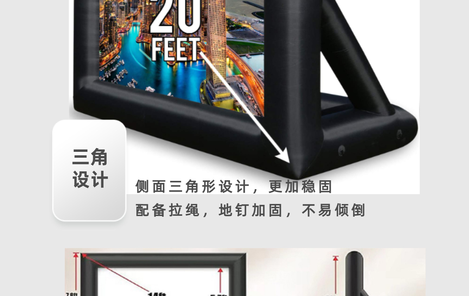 국경 간 대형 풍선 스크린 영화 프로젝션 커튼 야외 안뜰 접이식 휴대용 모바일 HD 레저 화면