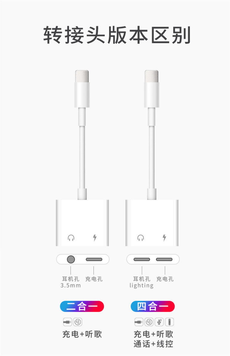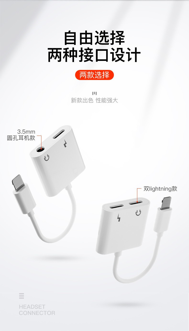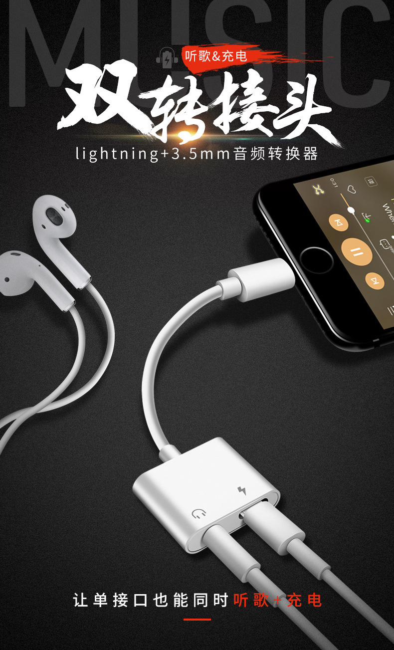 • 번개 + 3.5mm 새로운 시스템 (노래 듣기 + 충전 + 비디오 시청)