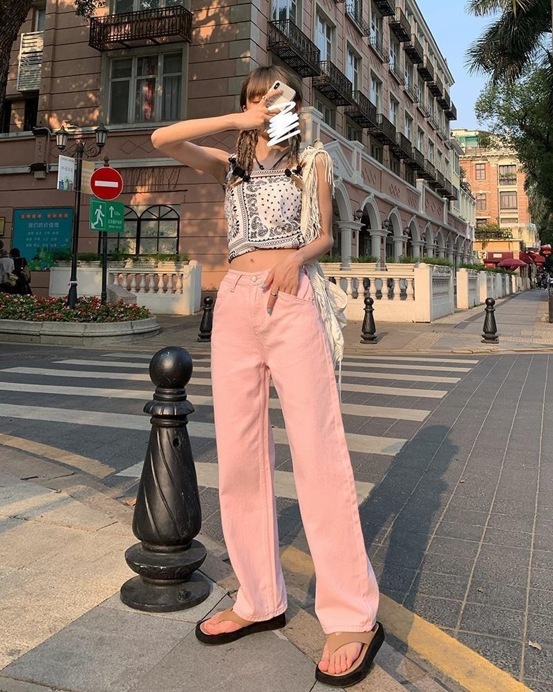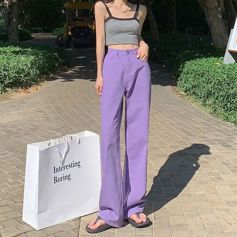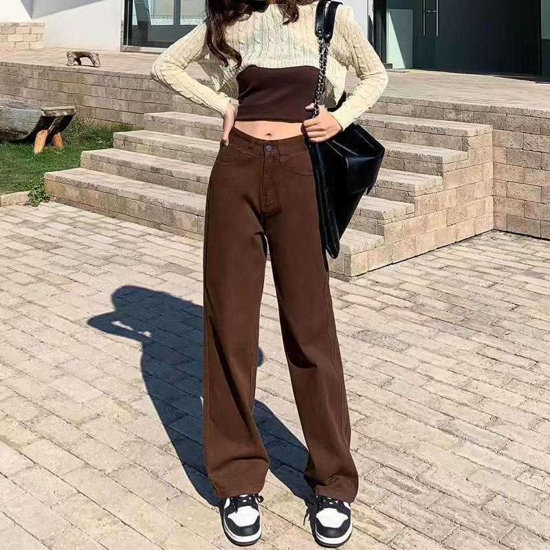 화려한 넓은 다리 바지 여성의 높은 허리 드레이핑 2022 봄과 가을 한국 스타일의 새로운 슬리밍 스트레이트 청바지 미국 하이 스트리트 바지스토어 가기