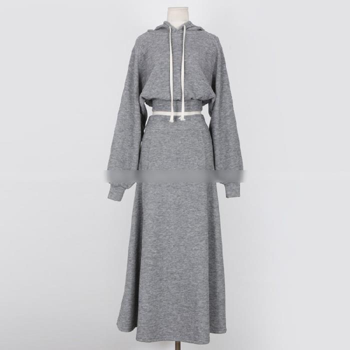 캐주얼 스포츠 세트 여성의 가을과 겨울 2023 새로운 후드 스웨터 하이 웨이스트 Aa 스커트 패션 투피스 세트
