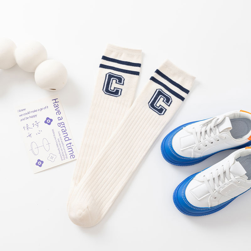 어린이 높은 양말 봄과 가을 면화 학업 스타일 여아 긴 튜브 종아리 양말 남아 편지 줄무늬 스포츠 무릎 양말
