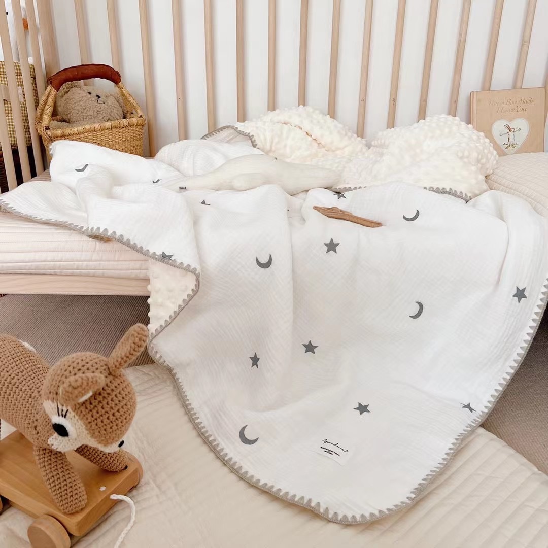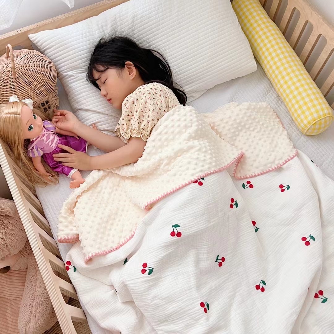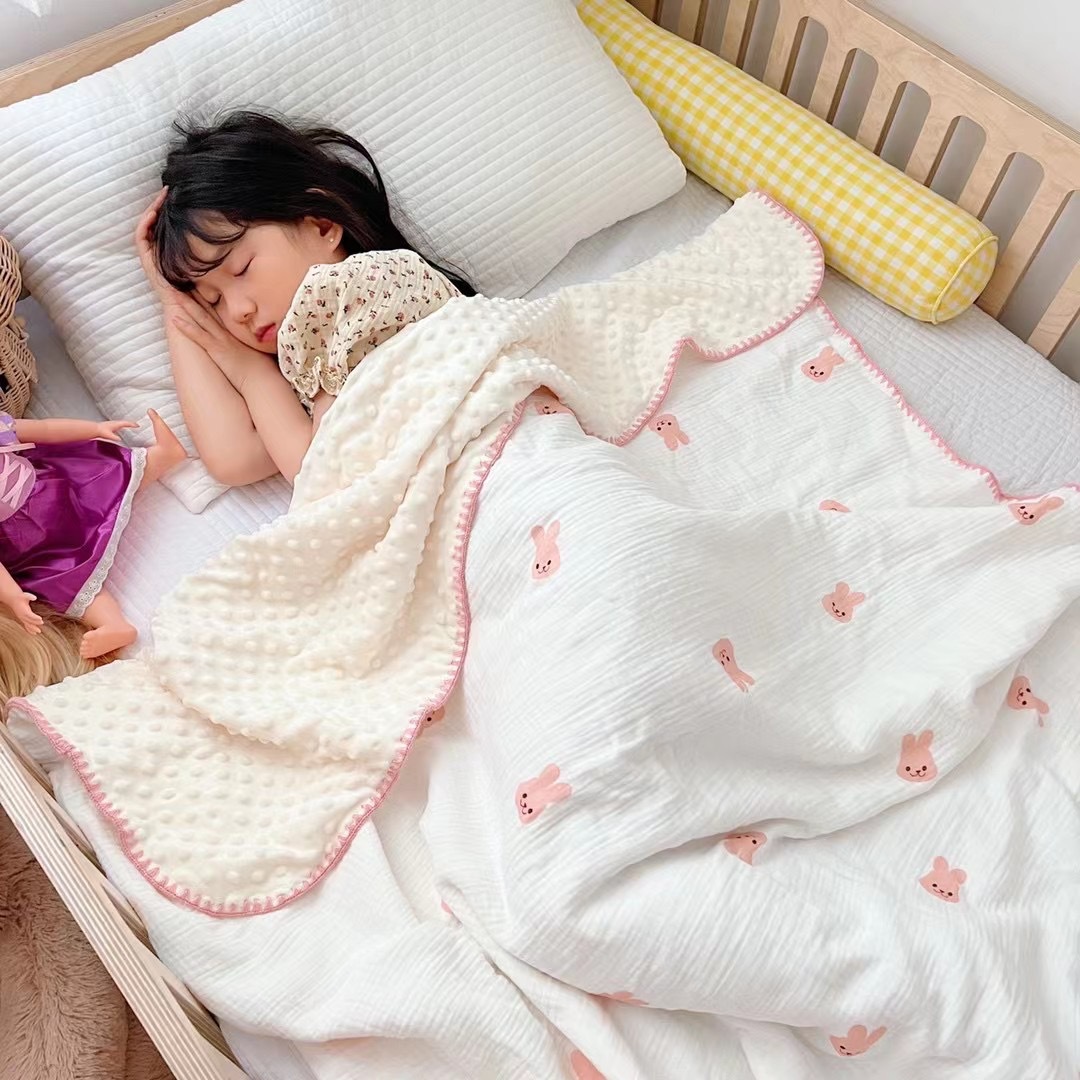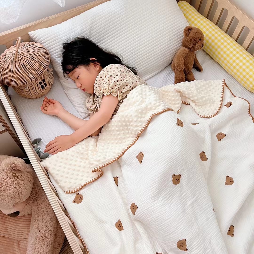 유아면 더블 레이어 거즈 완두콩 벨벳 컴포트 담요 어린이 낮잠 작은 커버 아기 완두콩 도매