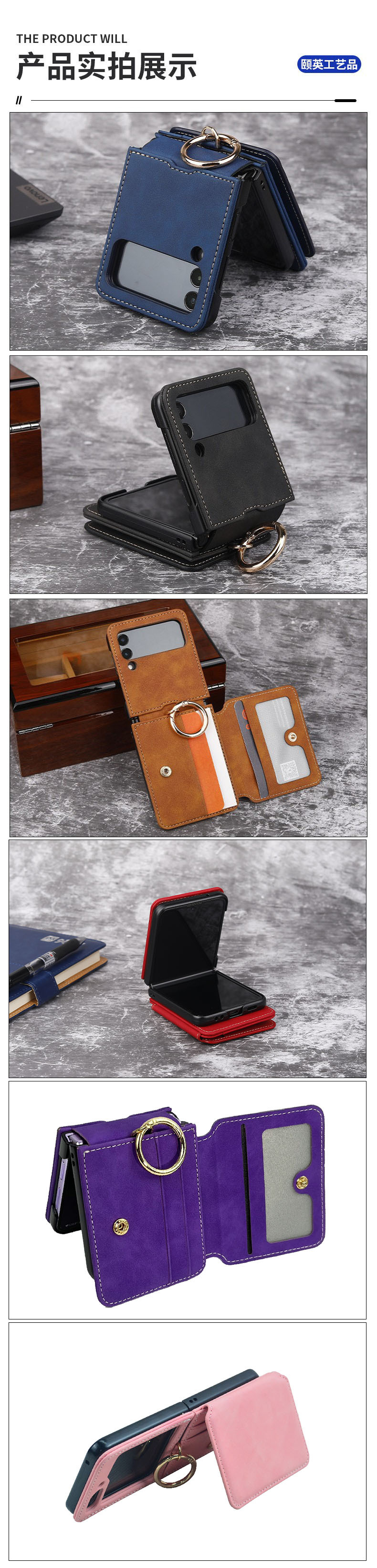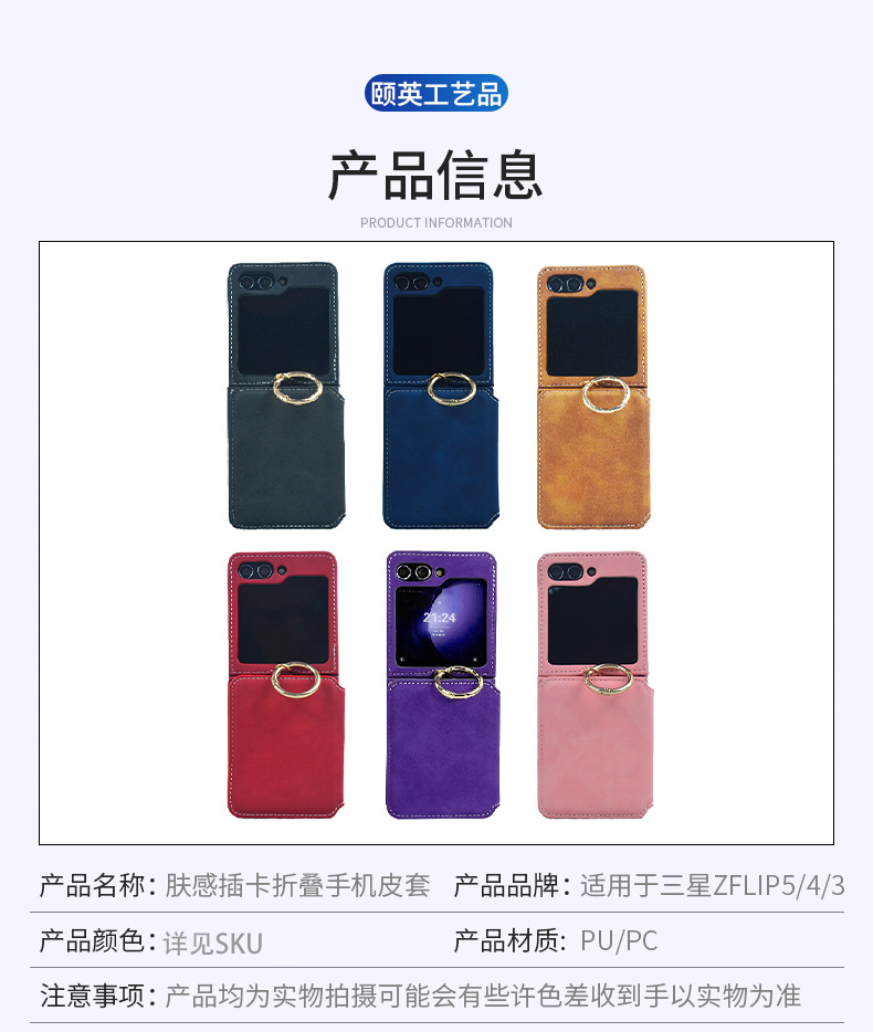 삼성 ZFlip6 휴대폰 케이스, 링 휴대폰 케이스, 삼성 Flip5 카드 삽입형 접이식 화면 보호 케이스에 대한 국경 간 적용스토어 가기