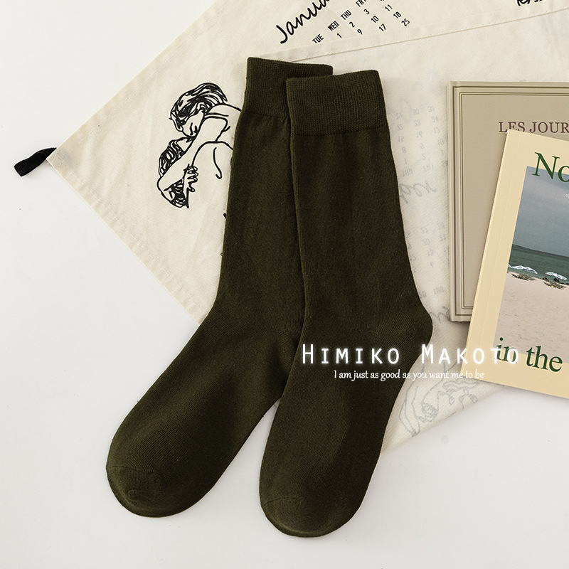 In Mori 남성용 면 땀 흡수 중간 길이 양말 일본 빈티지 비즈니스 캐주얼 더미 양말 남성 가을과 겨울 도매스토어 가기