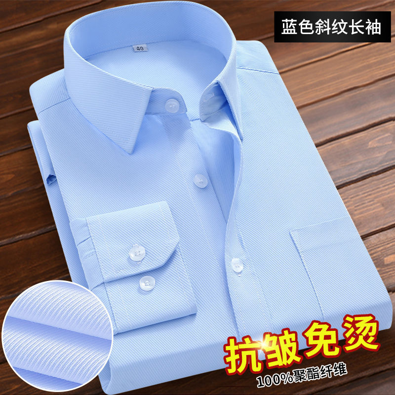 화이트 셔츠 남성용 긴팔 봄과 가을 전문가복 슬림핏 블루 셔츠 비즈니스 반팔 작업복 다리미가없는 정장 원피스