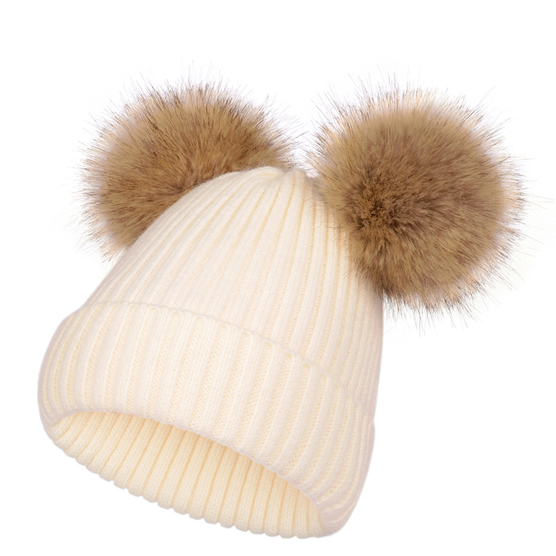 欧美秋冬新款针织帽 仿貉子双毛球帽子 亲子款