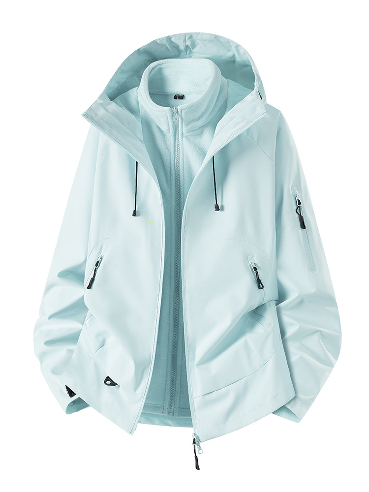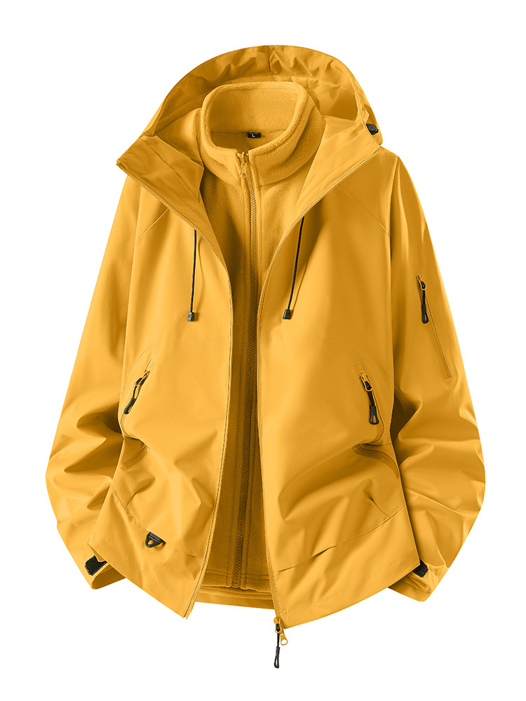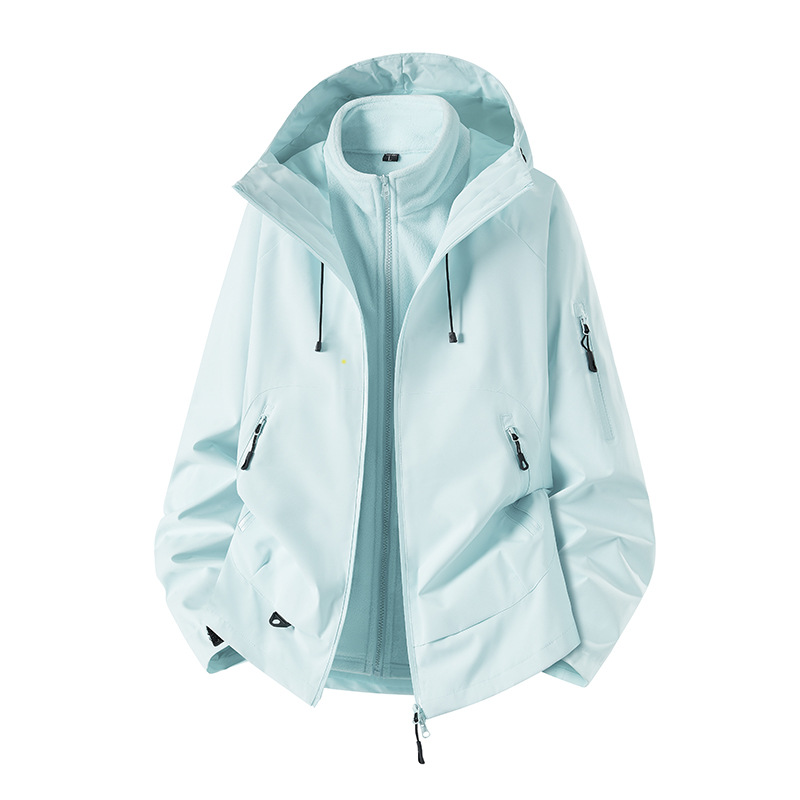 신상 가을 겨울 남성용 보온 재킷 아웃도어 3-in-1 재킷 남녀 공용 등산복 투피스 세트 로고 인쇄스토어 가기