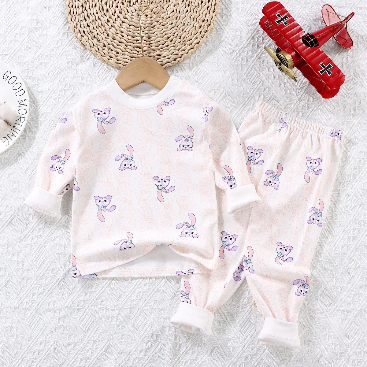 어린이 뼈없는 면 속옷 세트 초등 학생을위한 신생아 원활한 긴팔 바디 바텀 의류 가을 옷과 바지