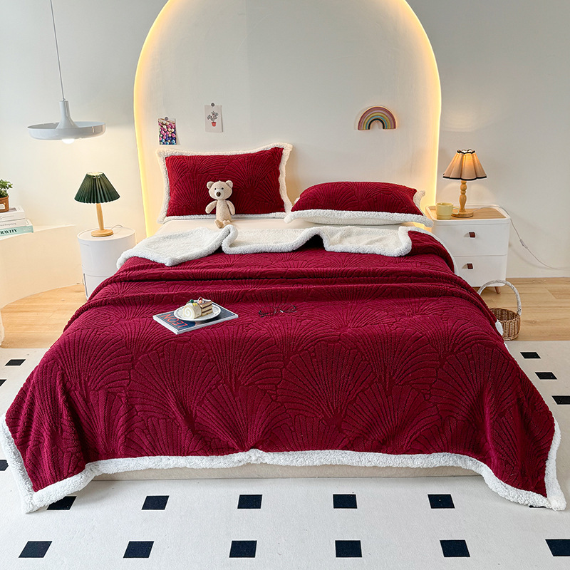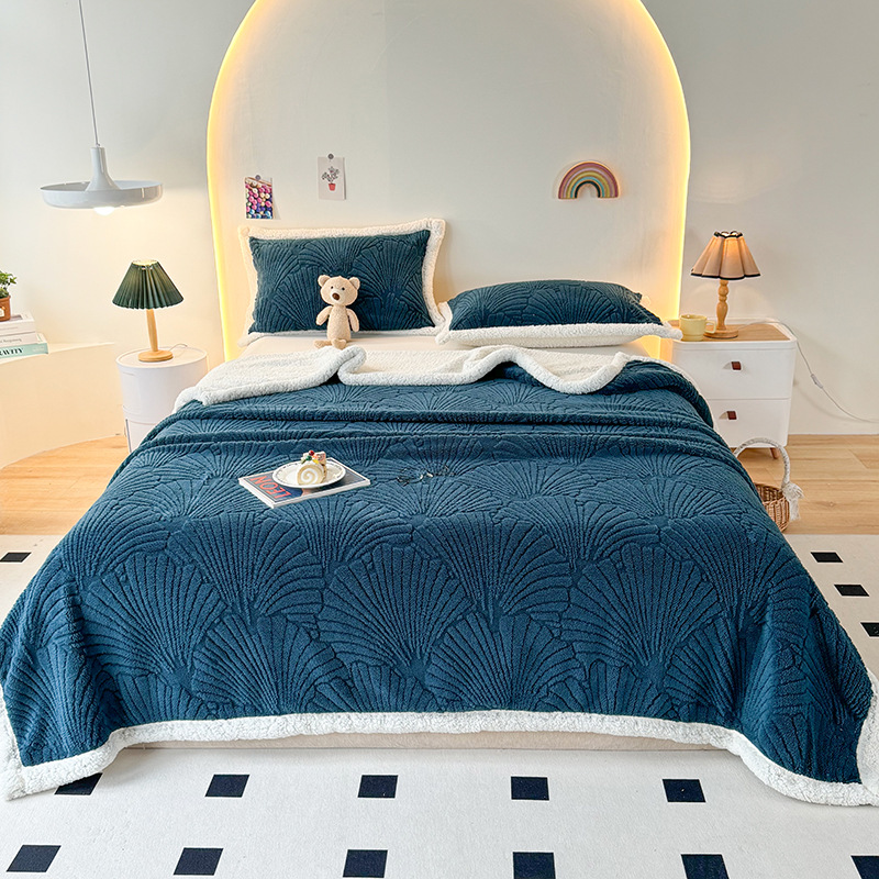 클래스 A 하이 웨이트 더블 레이어 두꺼운 담요 이불 커버 이중 사용 단색 밀크 타푸 북극 양털 4 피스 베갯잇 기숙사