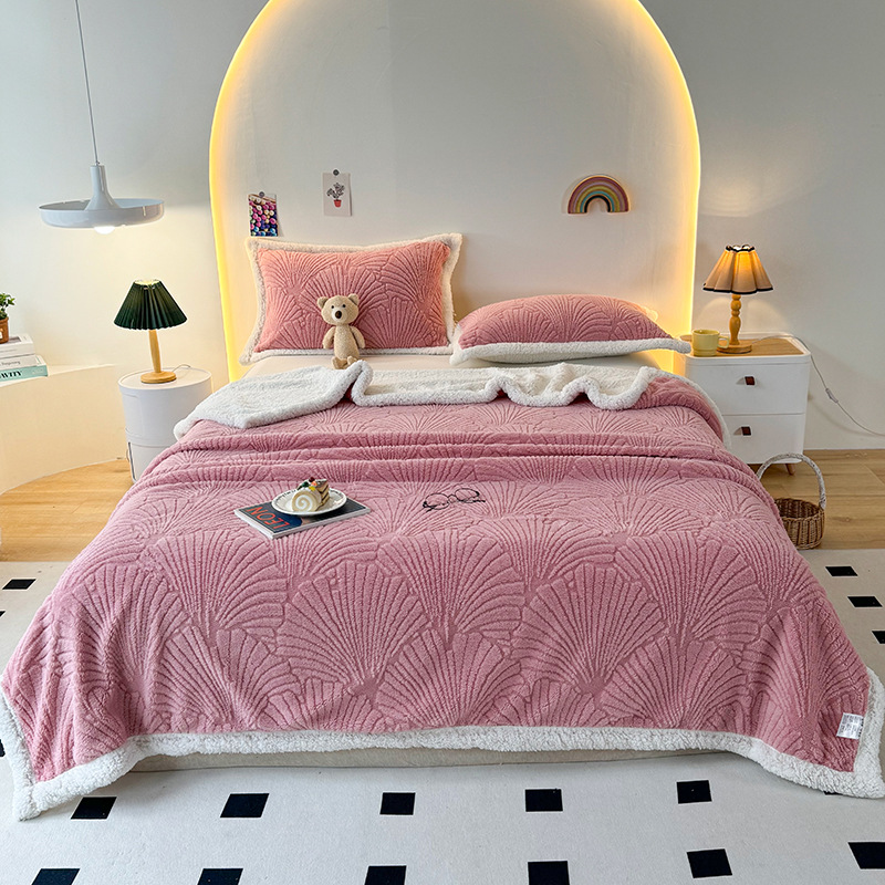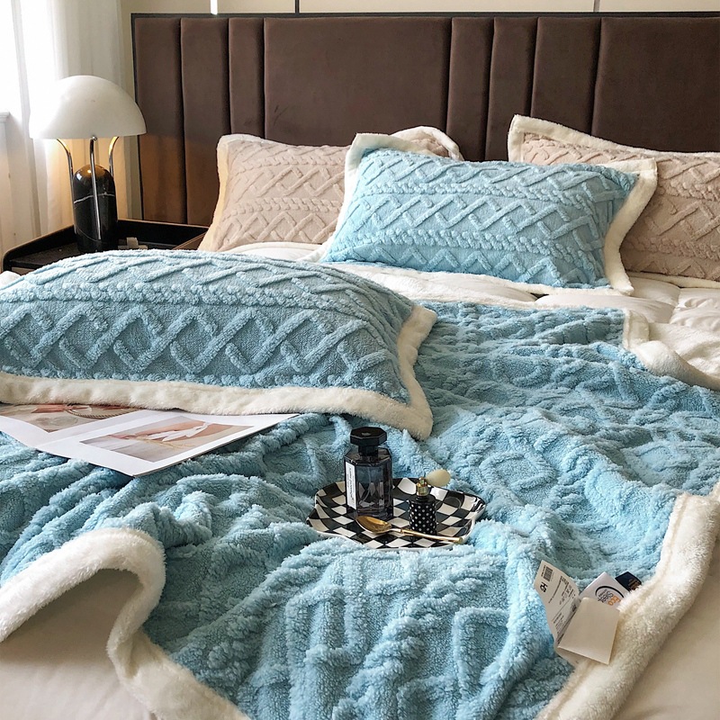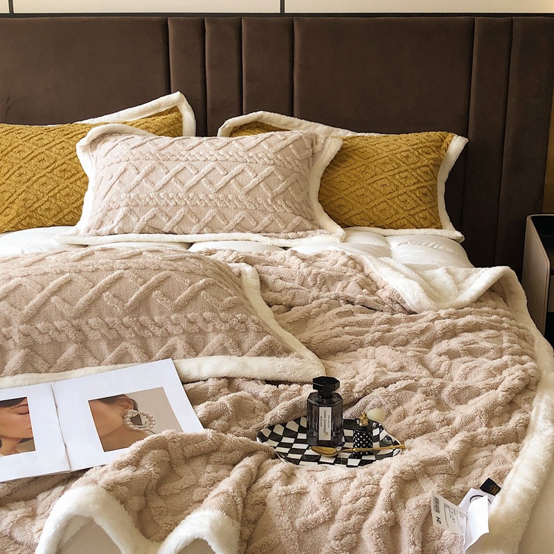 클래스 A 하이 웨이트 더블 레이어 두꺼운 담요 이불 커버 이중 사용 단색 밀크 타푸 북극 양털 4 피스 베갯잇 기숙사스토어 가기
