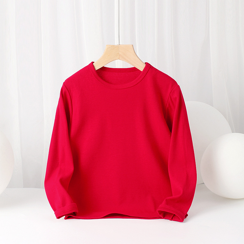 봄과 가을 아동 의류 한국 스타일 새로운 소년 바닥 셔츠 소녀 순수 코튼 스트레치 솔리드 컬러 긴팔 아동 티셔츠 도매