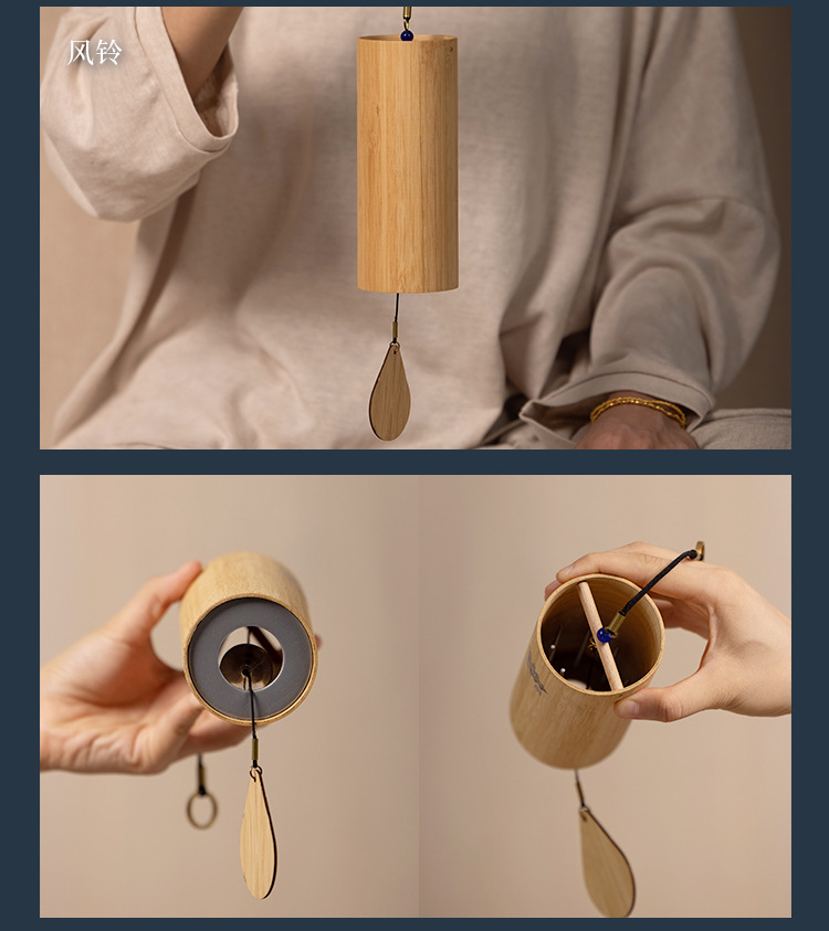 일본식 명상, 정신 안정, 블루 윈드 차임 음치료, 사계절 발코니 문걸이 장식, 천연 대나무 선물 세트