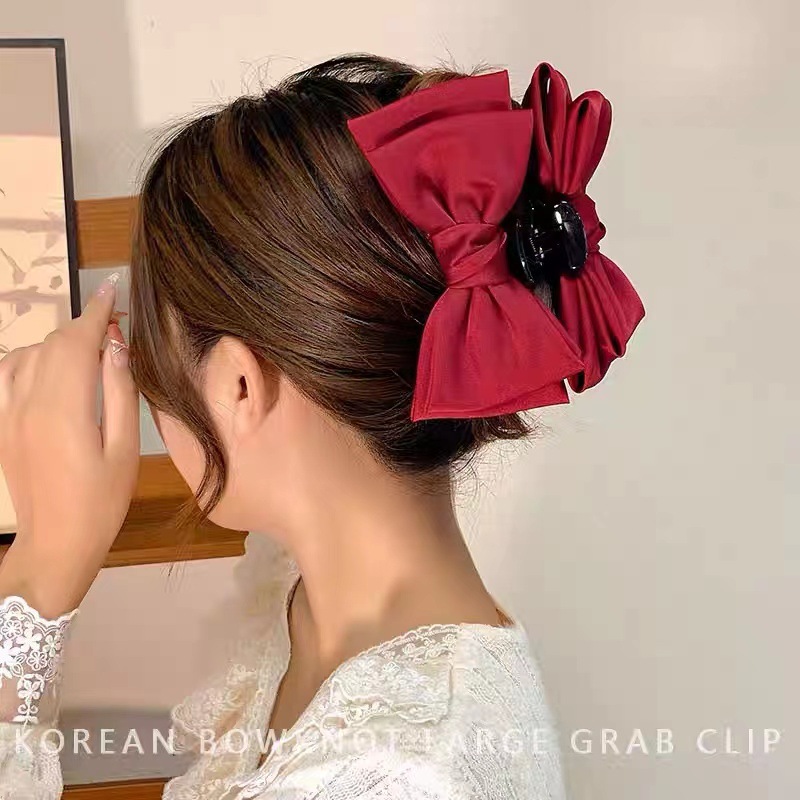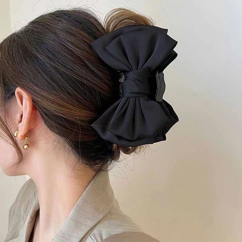 장 Xinyu 같은 스타일 블랙 보우 잡아 클립 대형 고급 상어 클립 머리핀 여성용 머리 머리 잡아 헤어 액세서리
