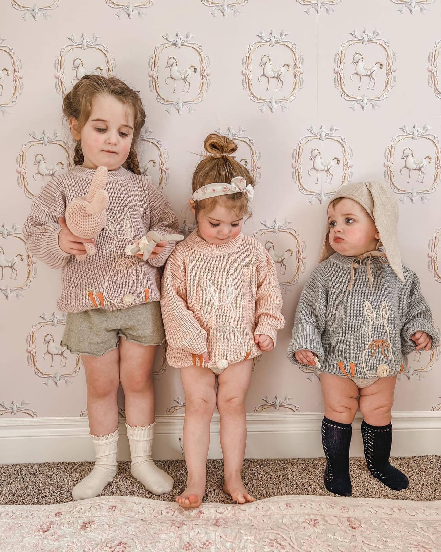 재고 인 스타일 가을과 겨울 새로운 어린이 토끼 스웨터 풀오버 아동베이스 스웨터 WAWA스토어 가기