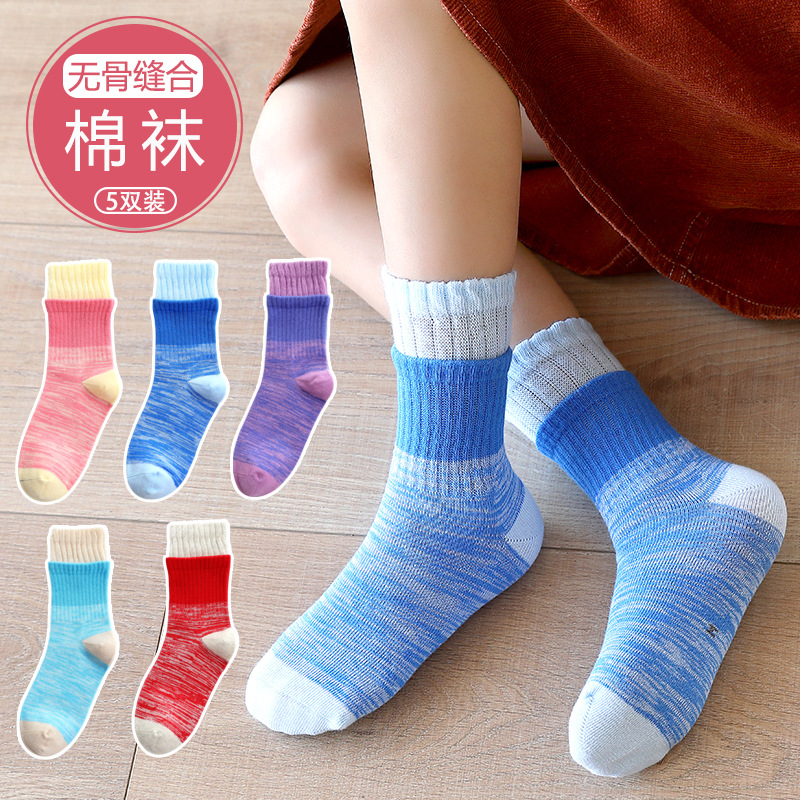 소녀 양말 봄과 가을 어린이 중간 튜브 양말 학생 소녀 다채로운 가을 겨울 무지개 양말 포장 높은 튜브 양말