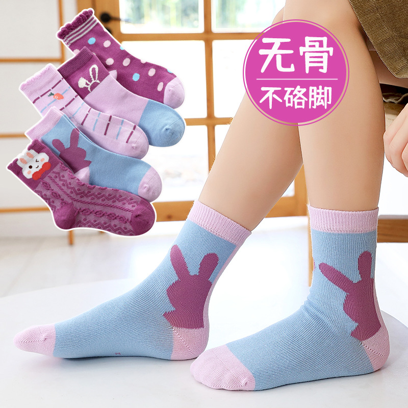 소녀 양말 봄과 가을 어린이 중간 튜브 양말 학생 소녀 다채로운 가을 겨울 무지개 양말 포장 높은 튜브 양말스토어 가기