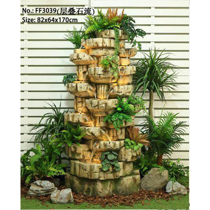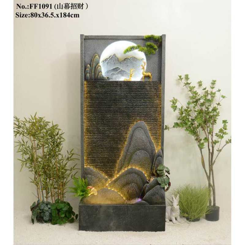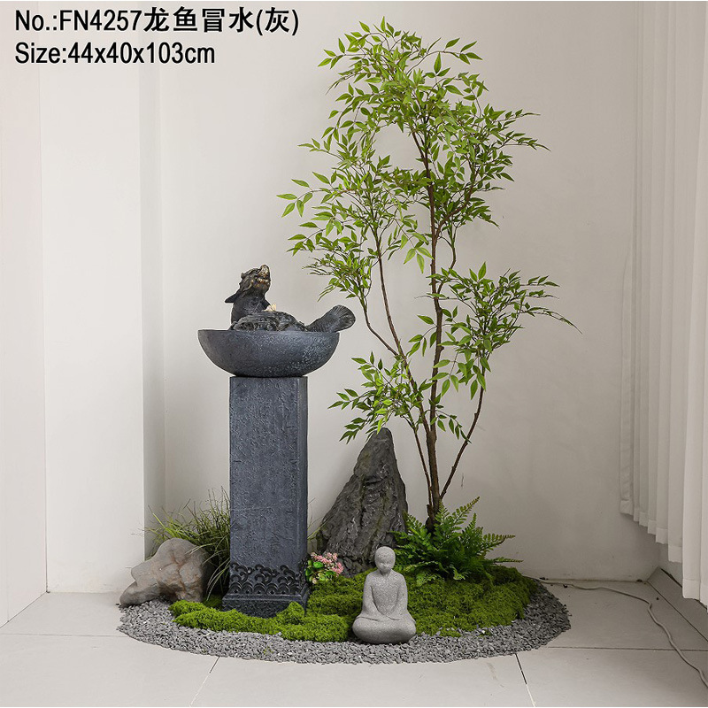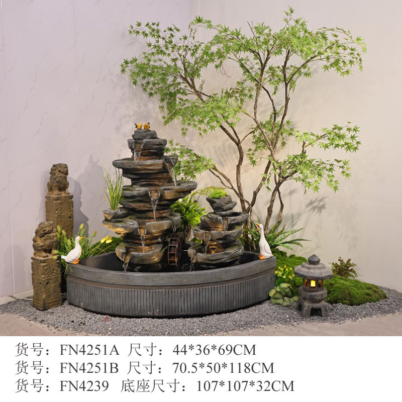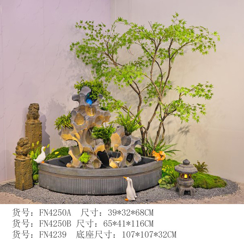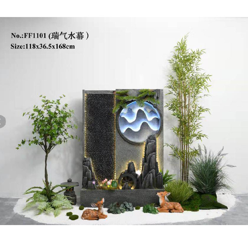 바위 흐르는 물 분수 바닥 장식 빌라 정원 안뜰 물고기 연못 호텔 물 커튼 벽 화면 실내 풍경스토어 가기