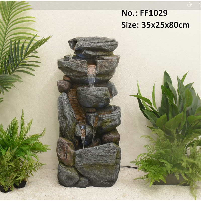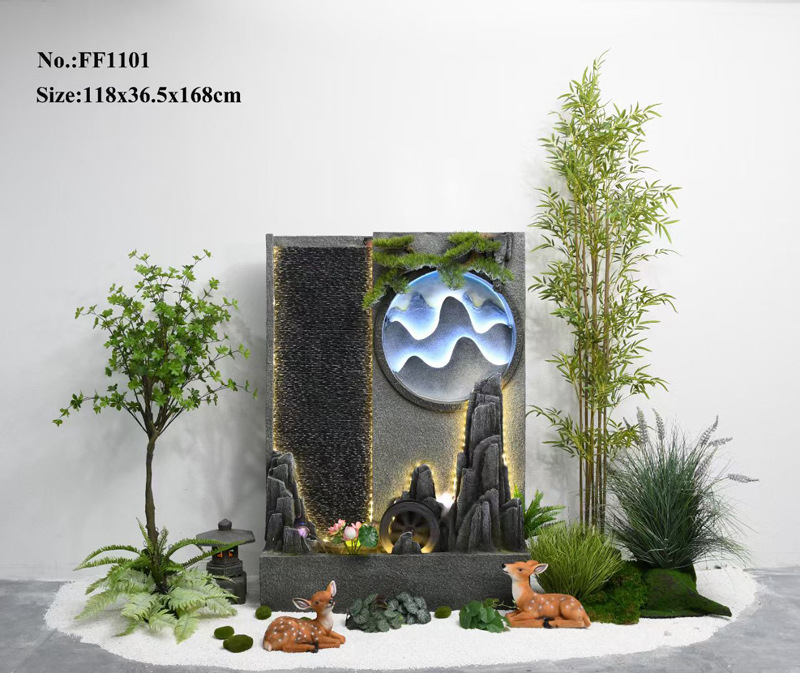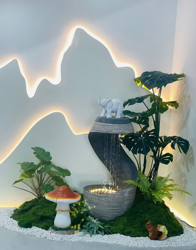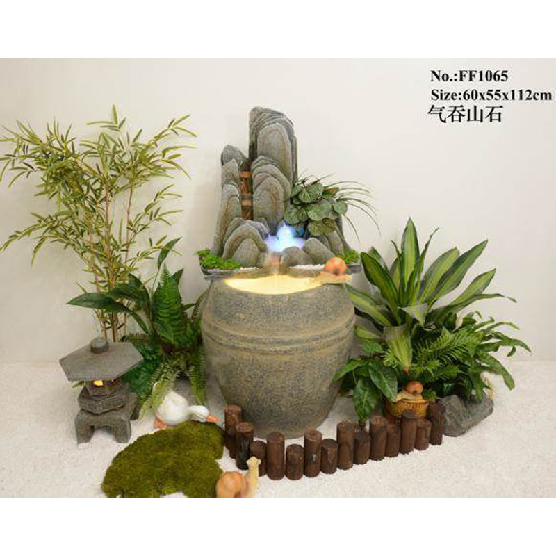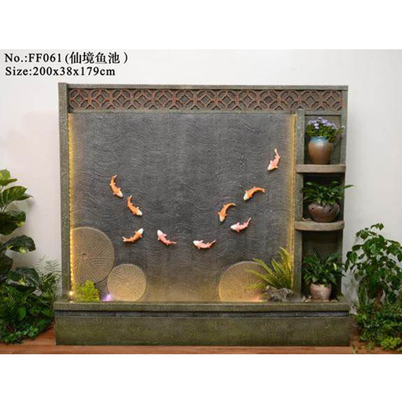 바위 흐르는 물 분수 바닥 장식 빌라 정원 안뜰 물고기 연못 호텔 물 커튼 벽 화면 실내 풍경