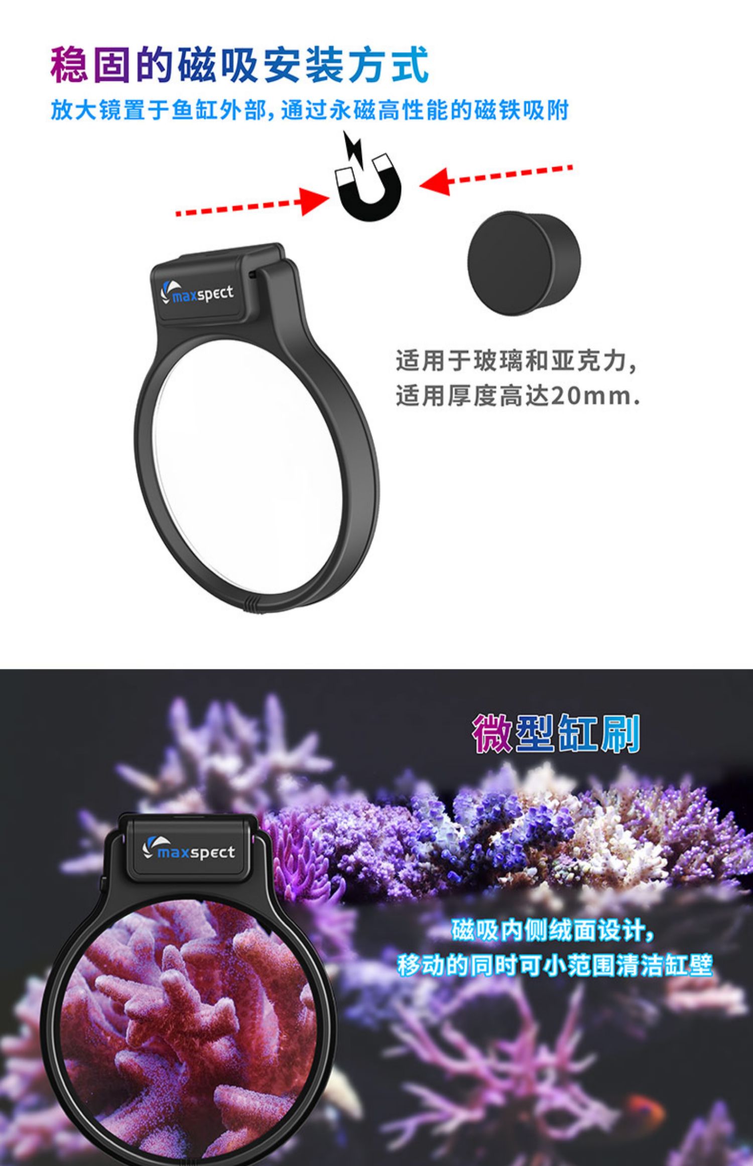 Maiguang의 새로운 플립 리바오 자기 돋보기 바다 탱크 산호 매크로 관찰 거울 촬영 필터 수조 장식 거울스토어 가기