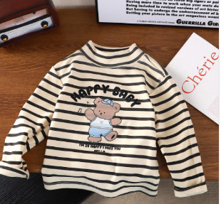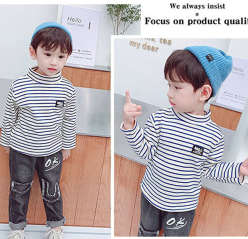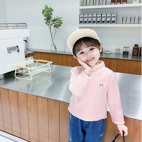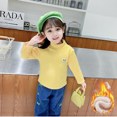 2025 어린이 가을 겨울 상의 남아 여아용 플리스 안감 두꺼운 하이넥 긴팔 티셔츠 유아용 보온복스토어 가기