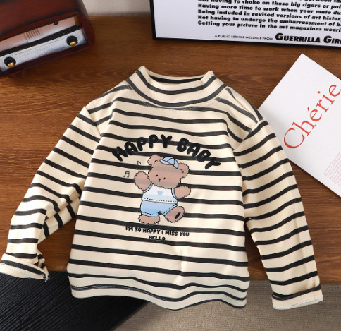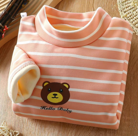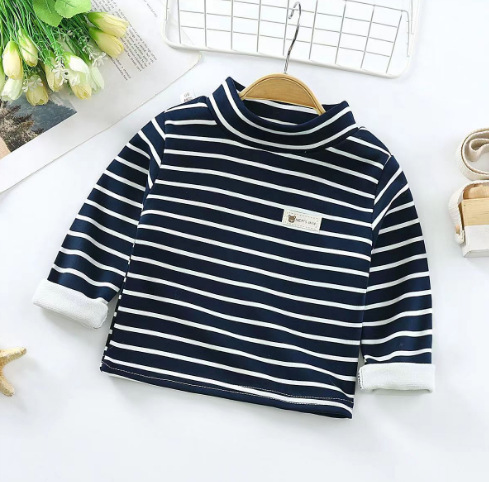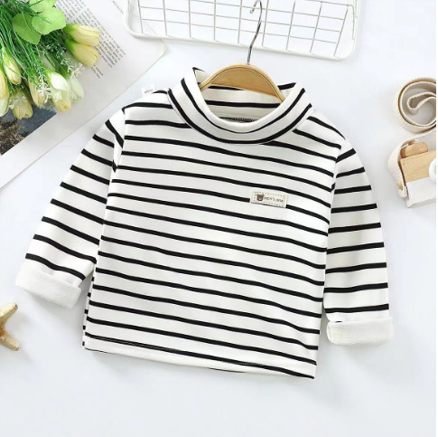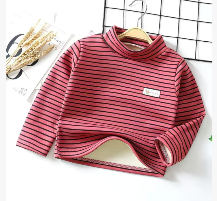 2025 어린이 가을 겨울 상의 남아 여아용 플리스 안감 두꺼운 하이넥 긴팔 티셔츠 유아용 보온복