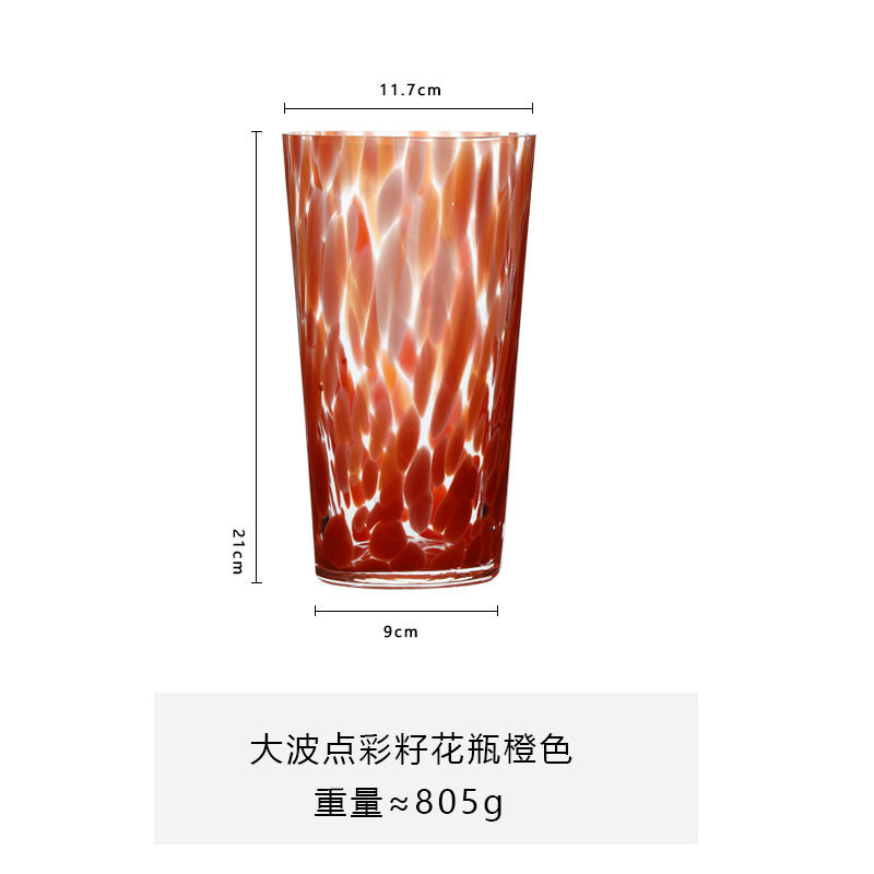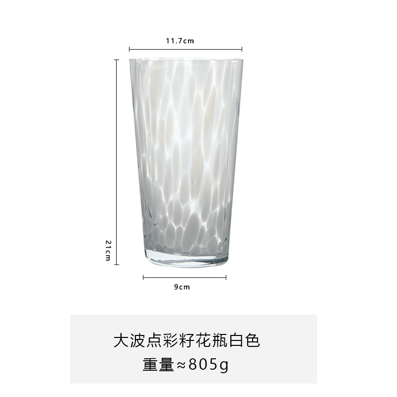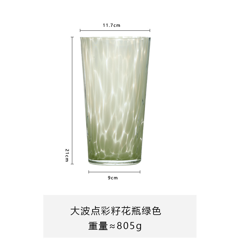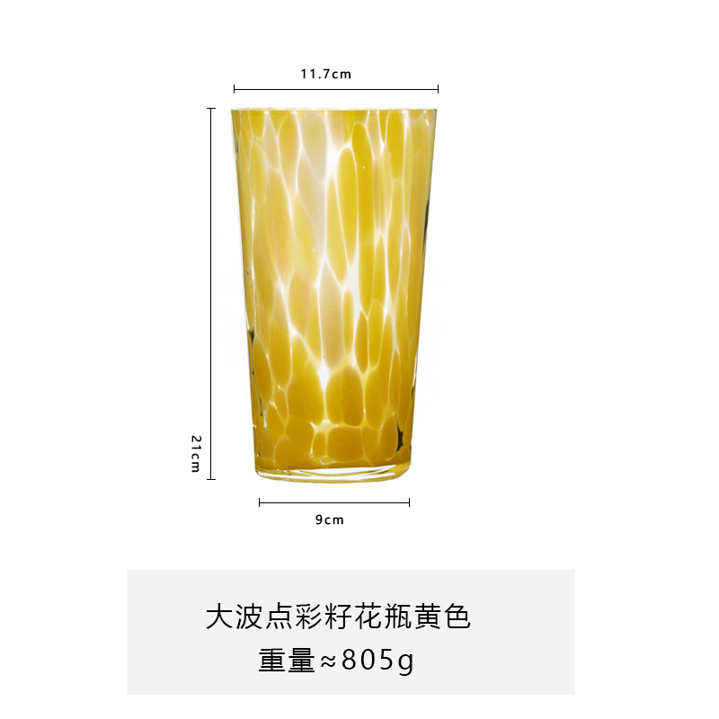 루 징보 도트 컬러 씨 유리 화병 도매 컬러 손 날린 유리 우유 커피 컵 냉수 컵스토어 가기
