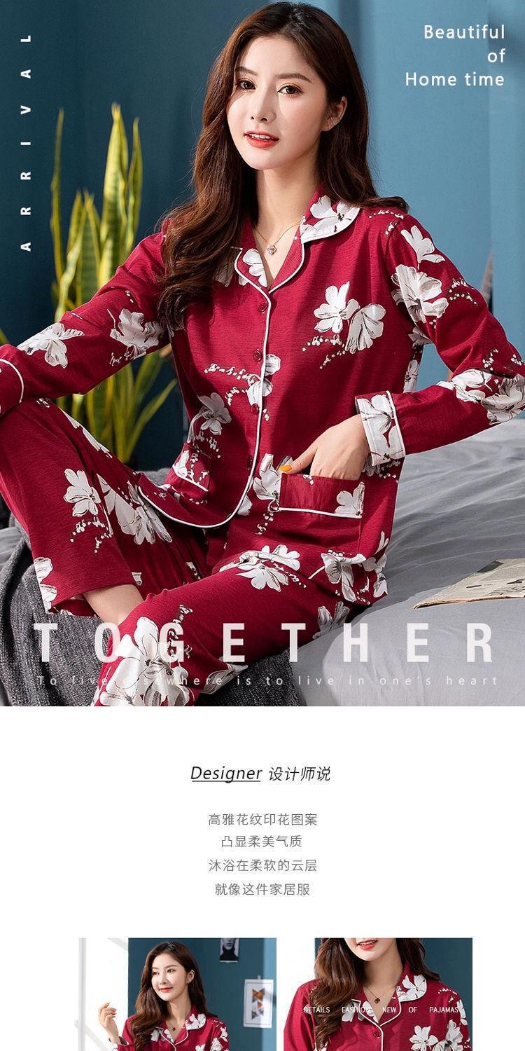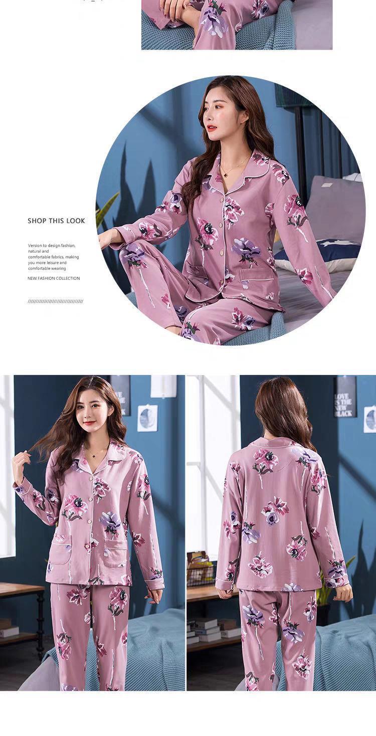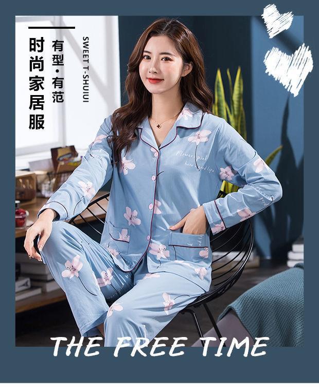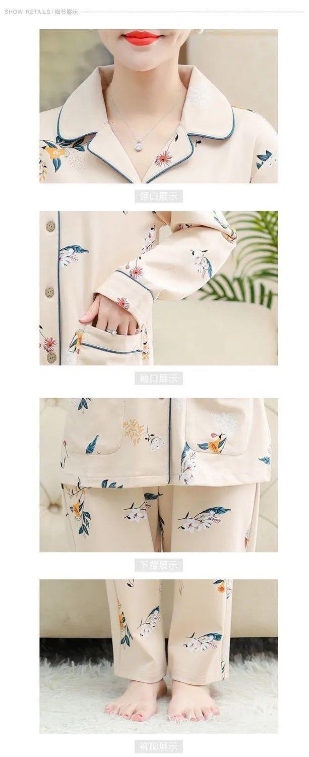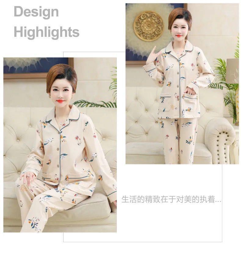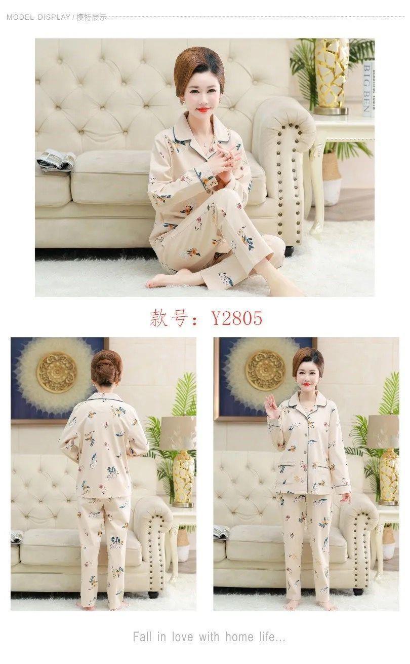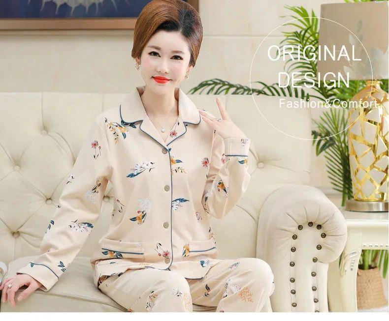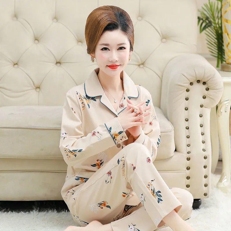 여성용 잠옷 봄 가을 긴팔 중장년용 대형 사이즈 캐주얼 홈웨어 겨울 여름 투피스 세트 해외 무역스토어 가기