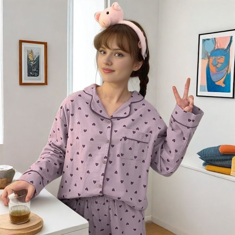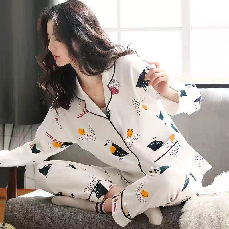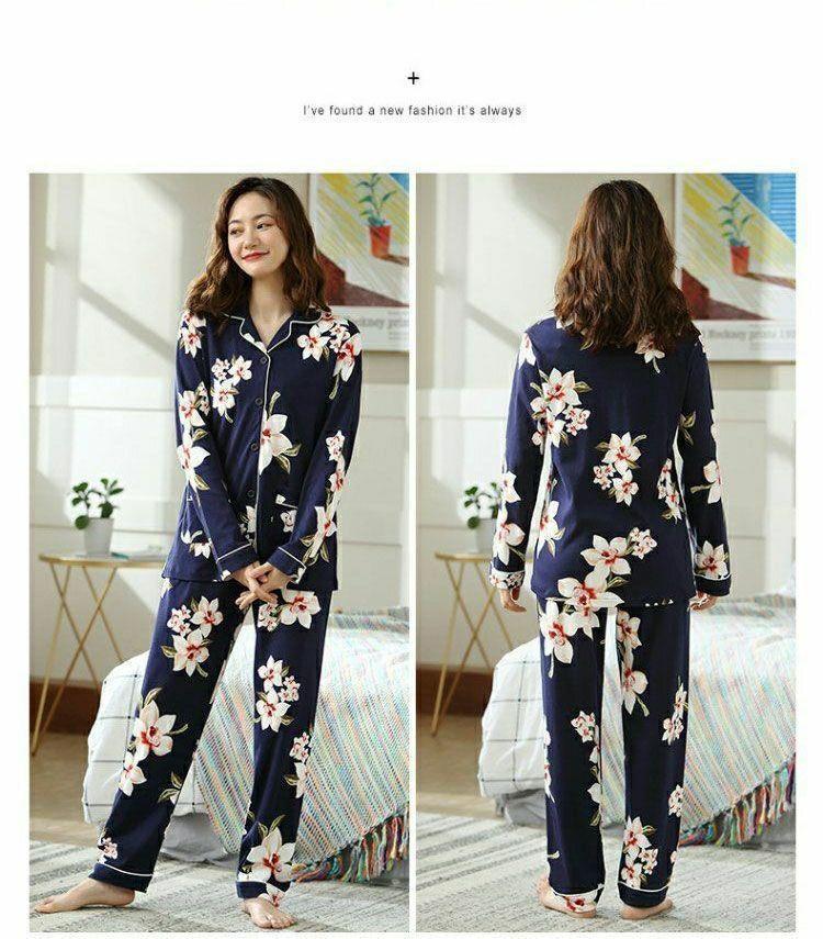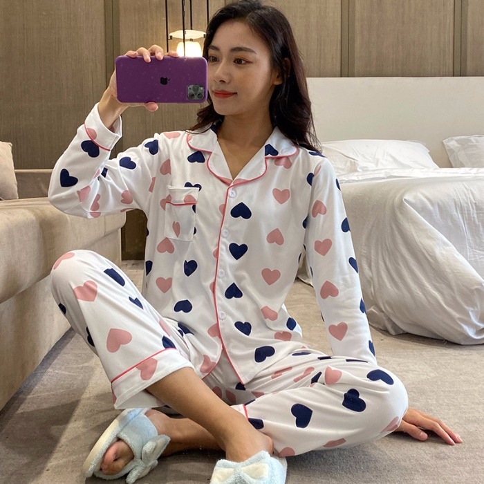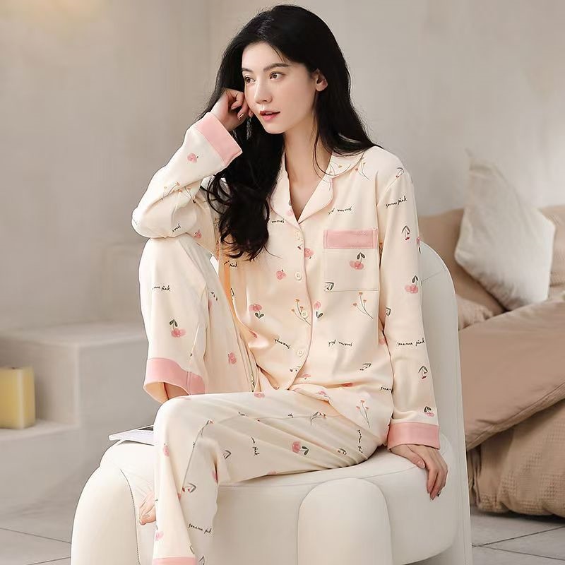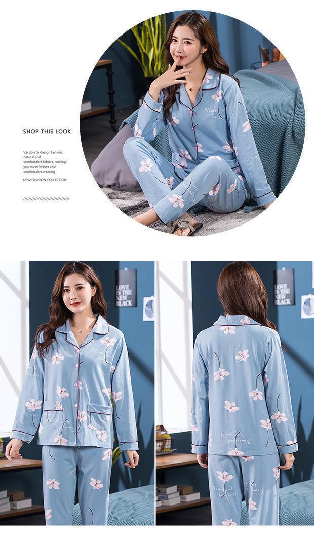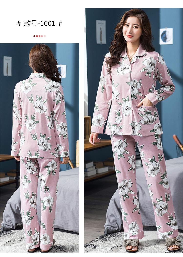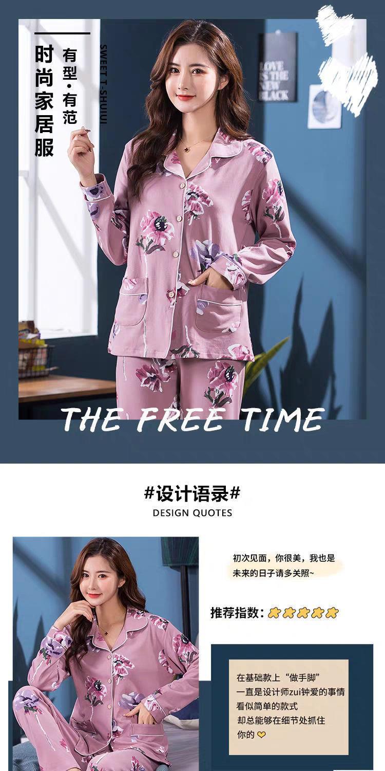 여성용 잠옷 봄 가을 긴팔 중장년용 대형 사이즈 캐주얼 홈웨어 겨울 여름 투피스 세트 해외 무역스토어 가기