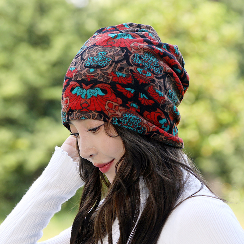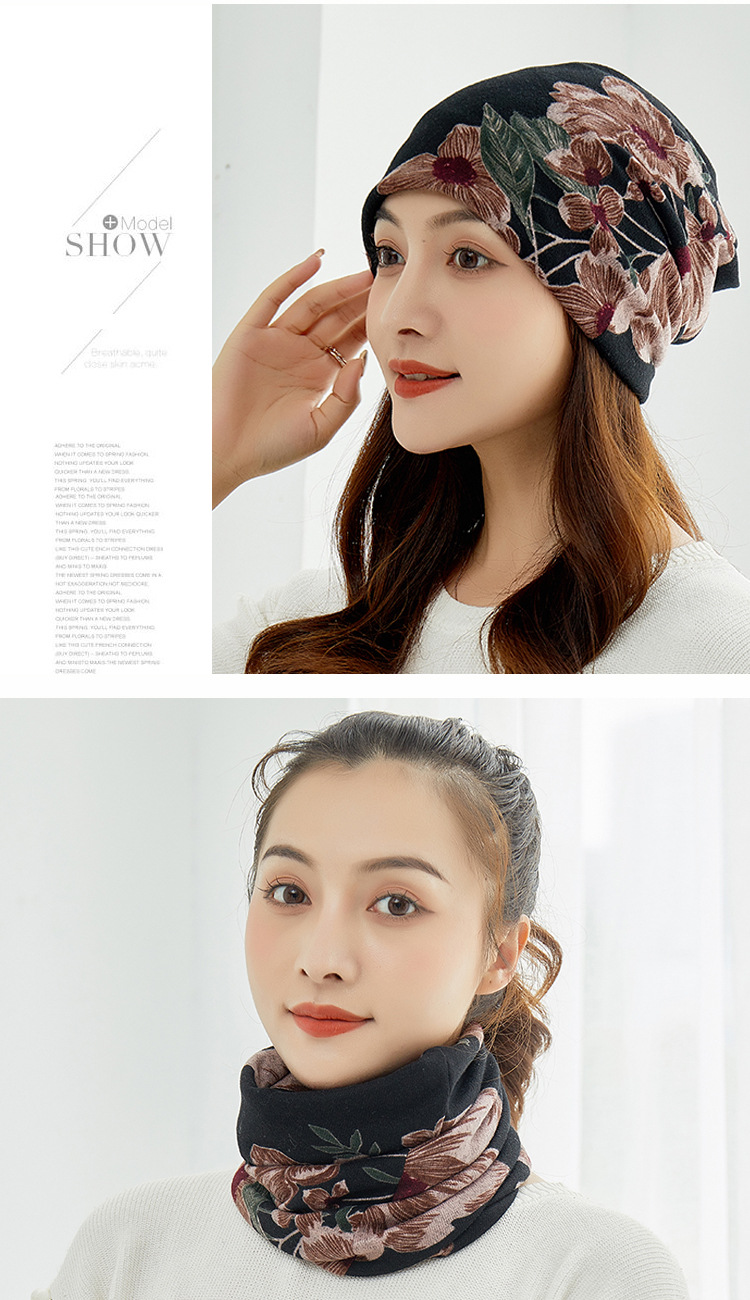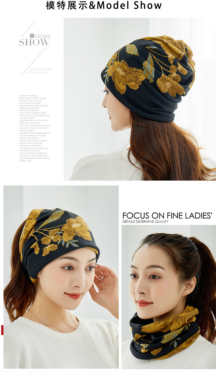 꽃 모자 여성용 가을과 겨울 한국 스타일 따뜻한 이중 목적 터틀넥 스포츠 모자 캐주얼 귀 보호대 발가락 모자 스카프 문 모자스토어 가기